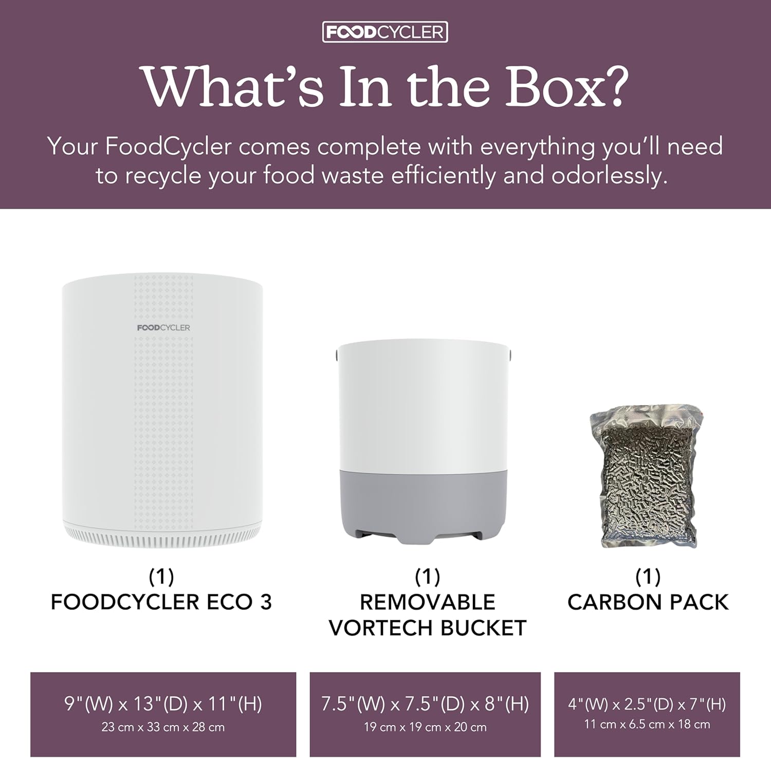 - TRANSFORM KITCHEN WASTE INTO PLANT FOOD -WITHOUT LIFTING A FINGER: The NEW FoodCycler Eco 3 is a convenient electric kitchen composter alternative to eliminate food waste. Ideal for the busy home, the Eco 3 quietly grinds your food waste into plant food, reducing the amount of trash you take out.
