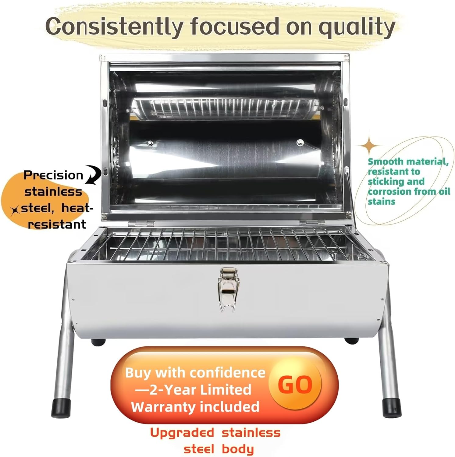 Upgraded Rust-Resistant Premium Stainless Steel Portable Charcoal Grill, Dual Large Grilling Zones,Easy-to-Assemble Outdoor Small Grill for Backyard,Patio,Travel&Camping,Foldable Tailgate Compact BBQ