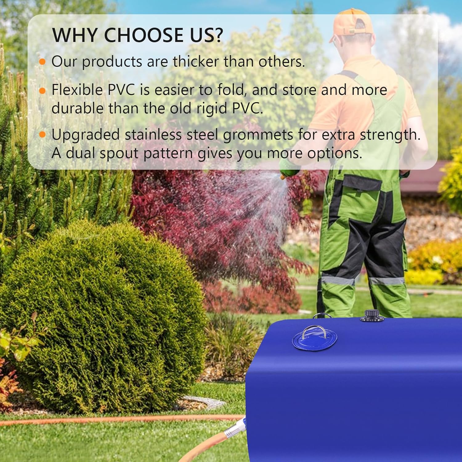 - EASY TO USE AND STORE WATER BAGS: Our water bladder tanks are made of flexible PVC material that can be easily used and folded for storage, the material is thick and sturdy, and the seams are well crafted and will last for years to come. The portable water bladder is wear-resistant, rainproof, fireproof, foldable, lightweight, easy to load/unload and transport, etc. It is practical! Temperature resistant up to -35~+80.