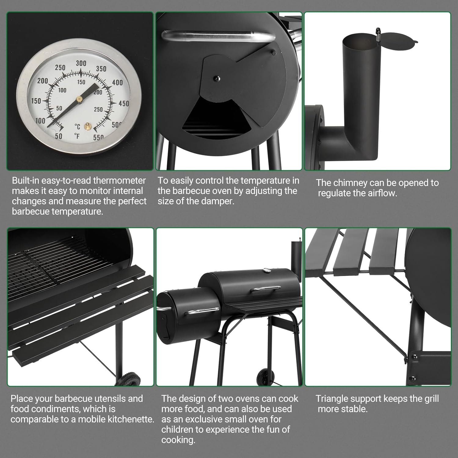 Outvita Outdoor BBQ Charcoal Grill, Portable Camping Grill for 6-10 People with Offset Smoker & Wheels for Patio Backyard Picnic