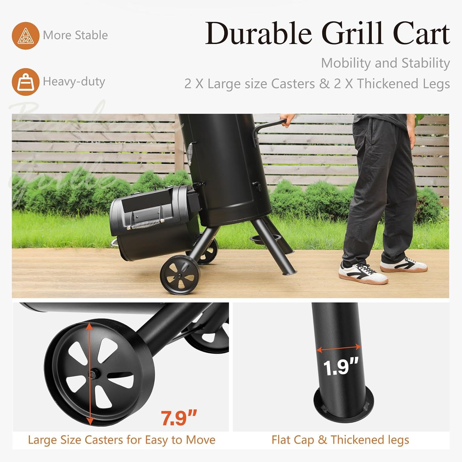- 【Easy to Clean & Heavy duty】Grease cup and push-out ash tray keep the post-grill cleanup hassle-free. Large wheels & thickened legs ensure this smoker grill stable enough. Outdoor grill dimensions - 27"D x 43.8"W x 51.5"H, Weight - 101 lbs.
