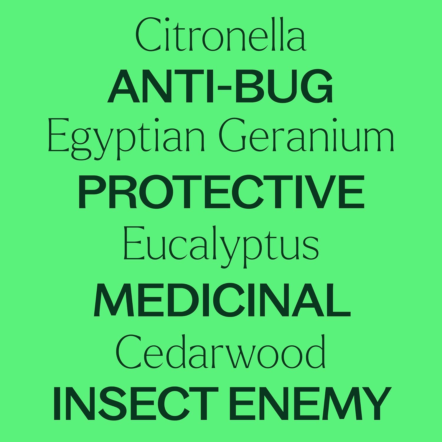 - POWERED BY PURE ESSENTIAL OILS: Formulated with a carefully selected blend of Citronella, Egyptian Geranium, Lemongrass, Eucalyptus, Virginian Cedarwood, Lavender, Tea Tree, Catnip, and Patchouli for a naturally fresh scent and outdoor-friendly formula.
