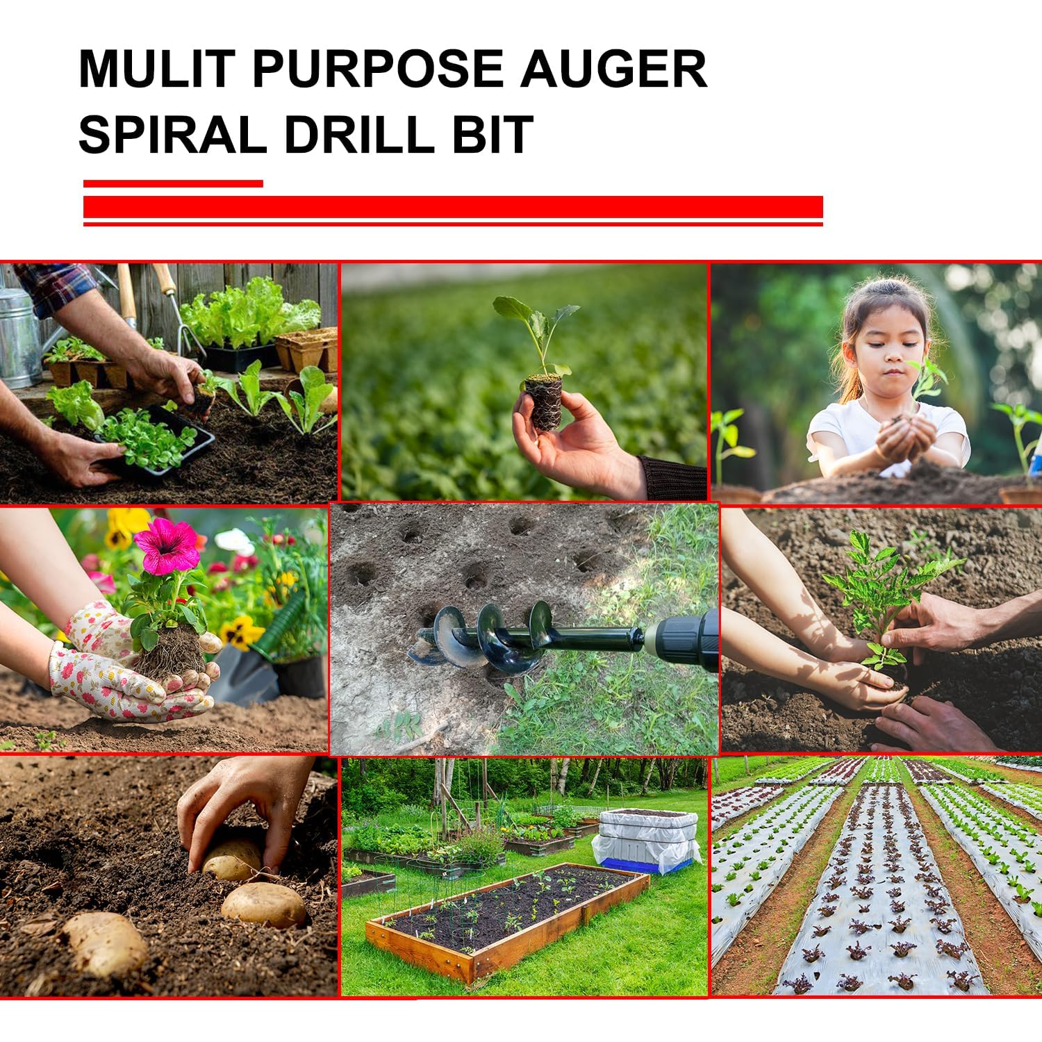 - 【Partner For Garden Work】;The ground soil auger drill bit is perfect for planting bulbs and bedding plants,vegetable,flower,potatoes,trees,and shrubs.It's also suitable for tilling soil or planter boxes, mixing seed, soil, fertilizer, paint, or batches of mortar mix for hardscapes. The auger drill bit can effortlessly dig post holes, and it's even handy for anchoring your beach umbrella in the sand during vacations. It will be an invaluable helper for you.