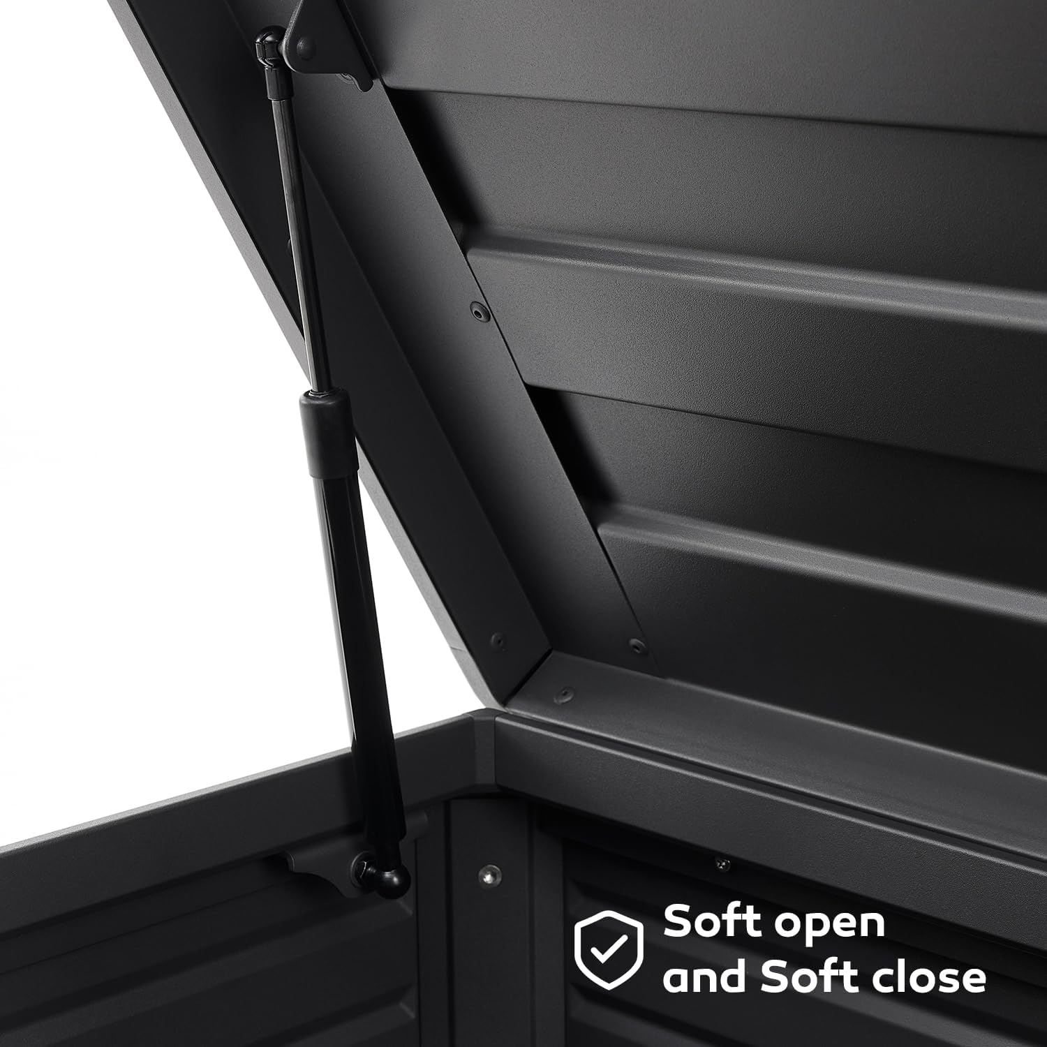 175 Gallon Outdoor Storage Box Waterproof, Metal Deck Box with wheels for Patio Furniture, Garden Tools, Outdoor Cushion, Charcoal