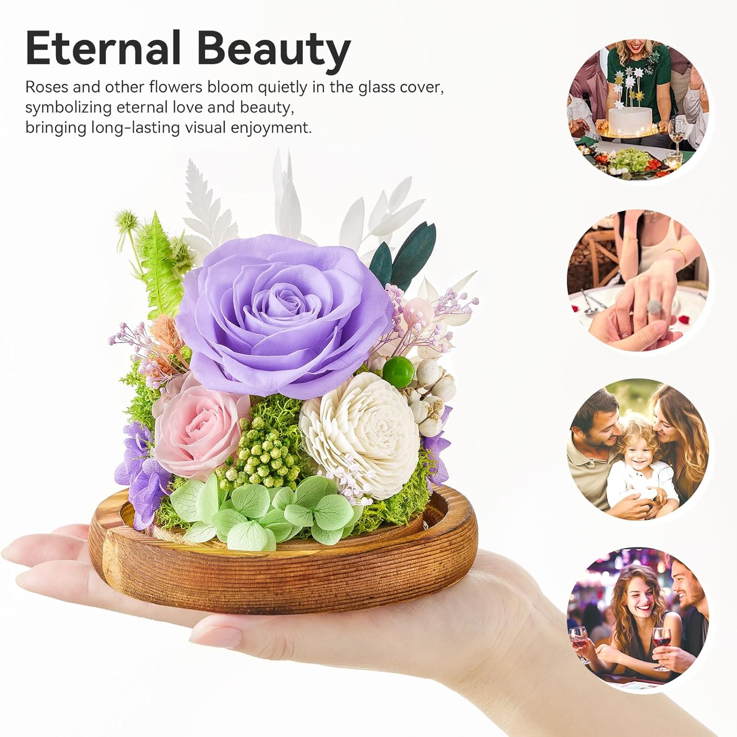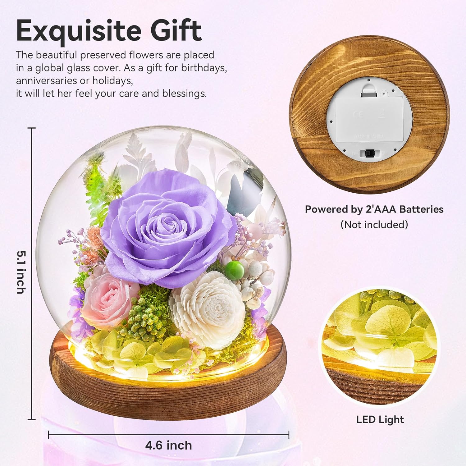 Preserved Flowers Rose Birthday Gifts for Women, Forever Flowers in Glass Ball, Long-Lasting for Mom Her Wife Grandma Anniversary Valentines (Light Purple)