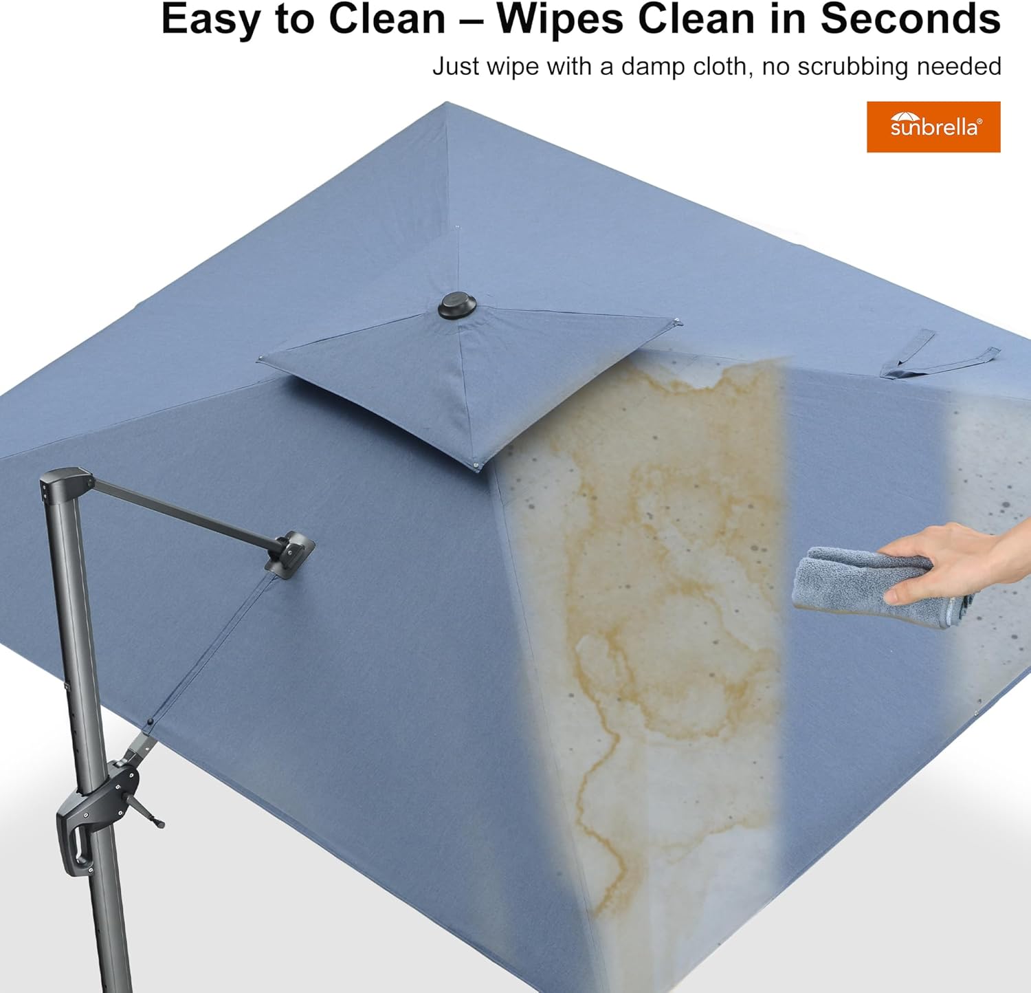 - Superior UV Protection: Featuring industry-leading fabric, this cantilever umbrella blocks over 98% of UV rays to effectively reduce skin cancer risks. 5 years of fade resistance, water and stain resistance.