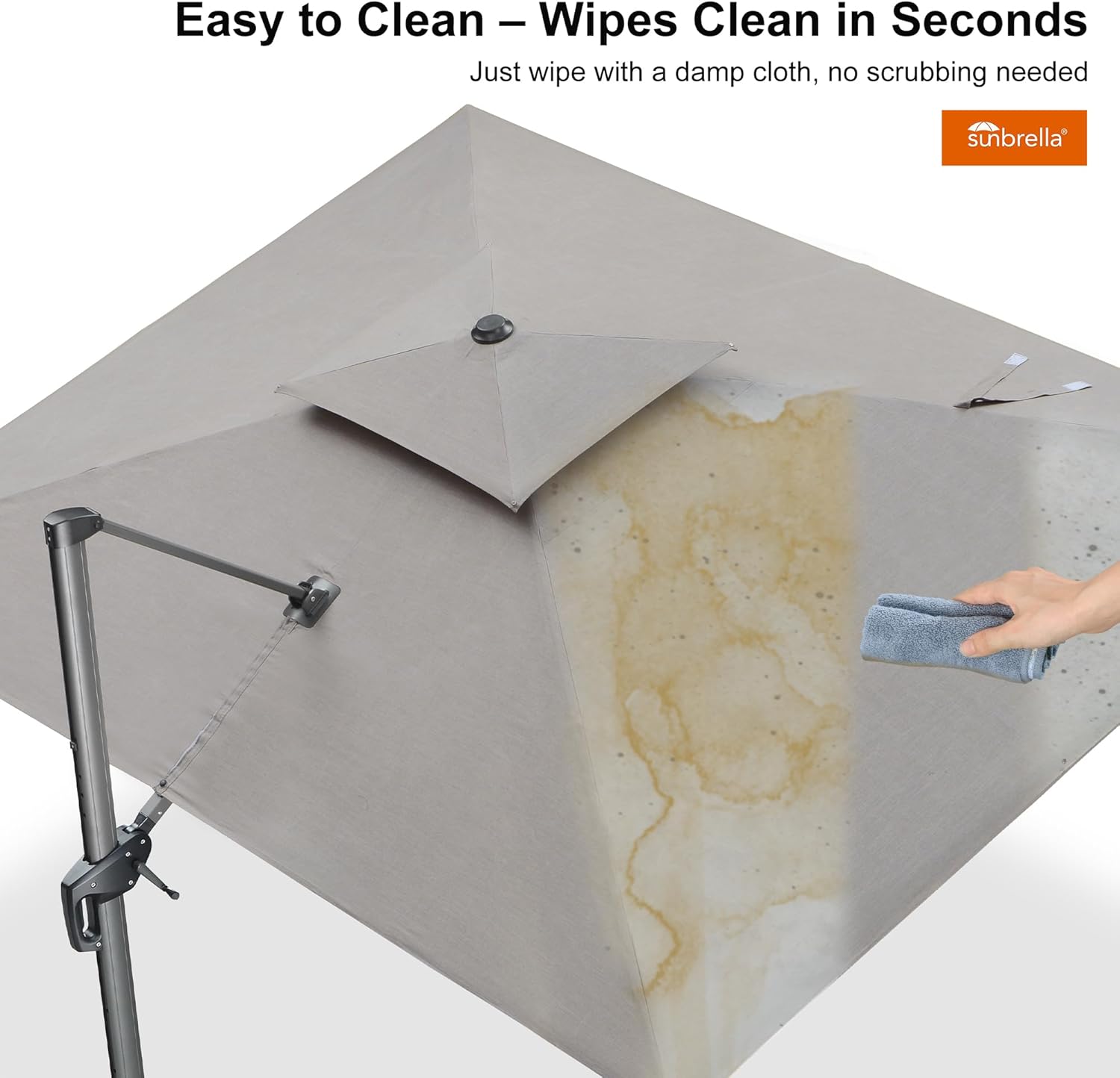 - Superior UV Protection: Featuring industry-leading fabric, this cantilever umbrella blocks over 98% of UV rays to effectively reduce skin cancer risks. 5 years of fade resistance, water and stain resistance.