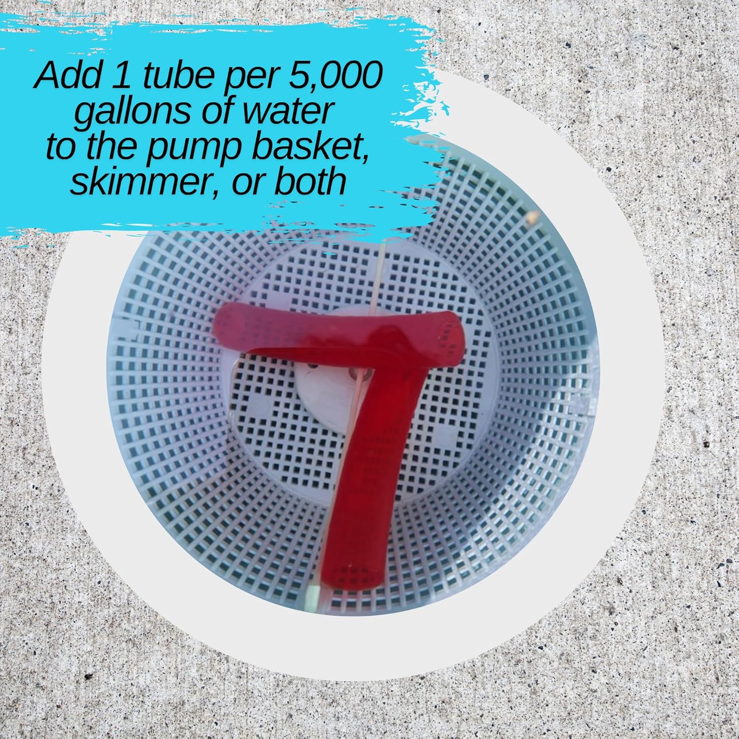 - One tube treats up to 5,000 gallons of water and offers protection for a pool season