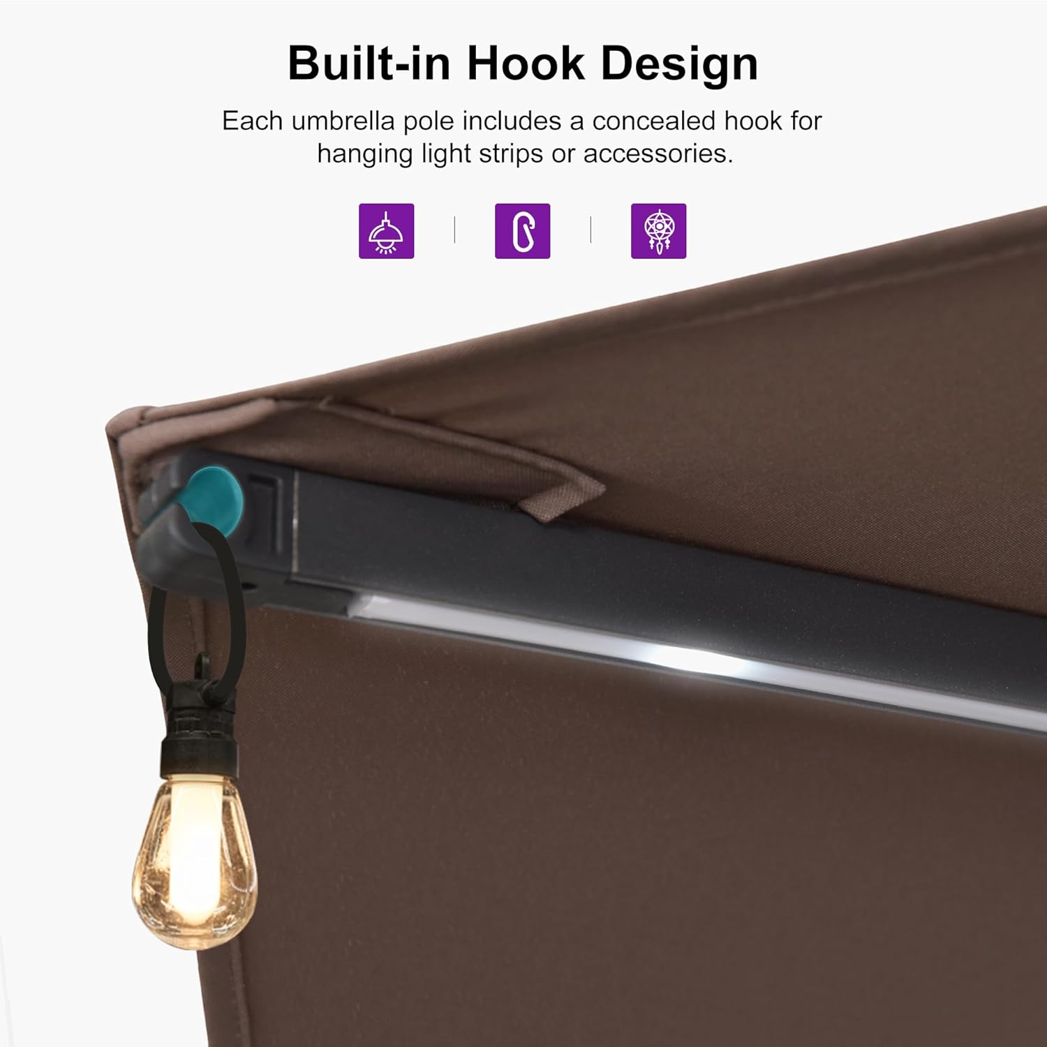 - Crank Design: The simple crank lifting system is equipped, enabling the convenient and rapid opening and closing of the patio umbrella. Additionally, an advanced chain lock pin is provided, ensuring the stability of the umbrella even in windy conditions