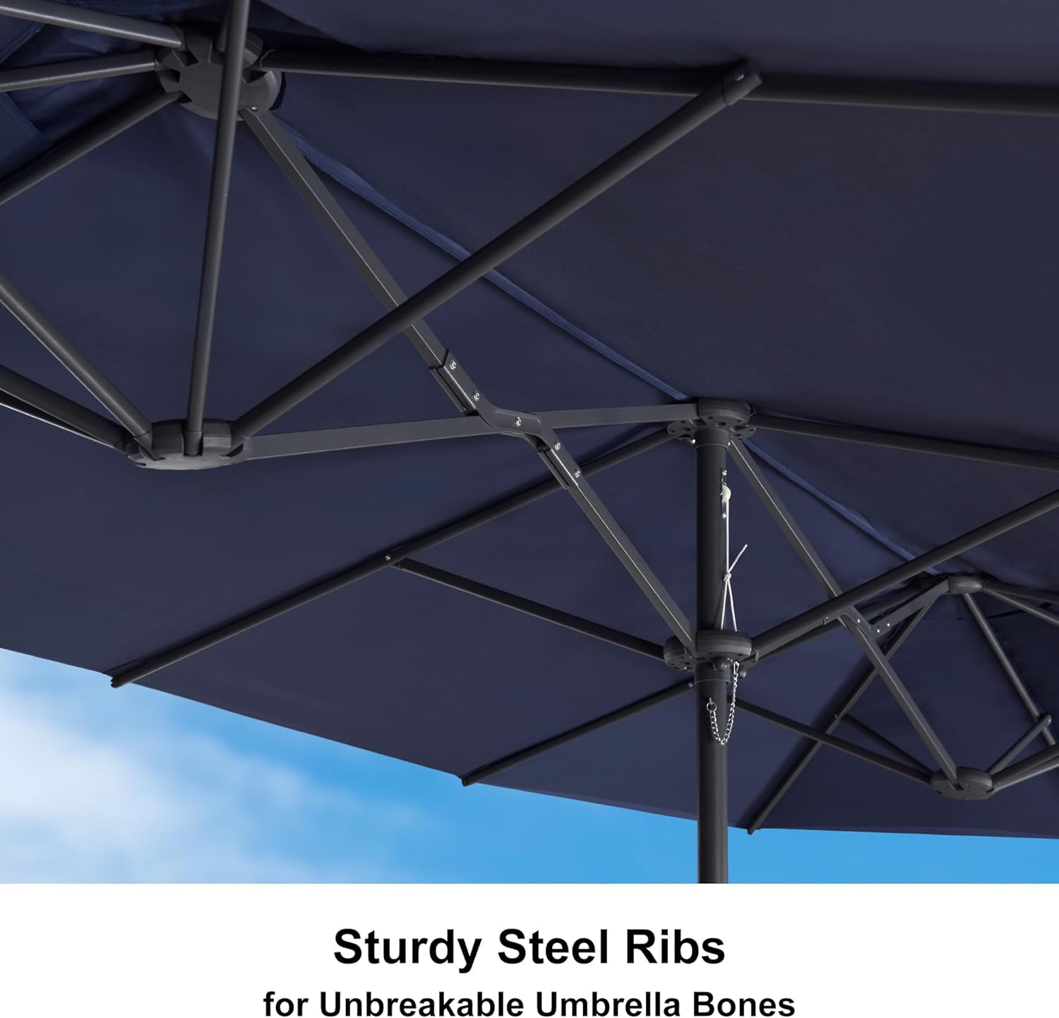 PURPLE LEAF 15ft Patio Market Umbrella with Base Included Double-Sided Rectangle Outdoor Umbrella Table Umbrella with Crank for Pool Garden Deck, Navy blue