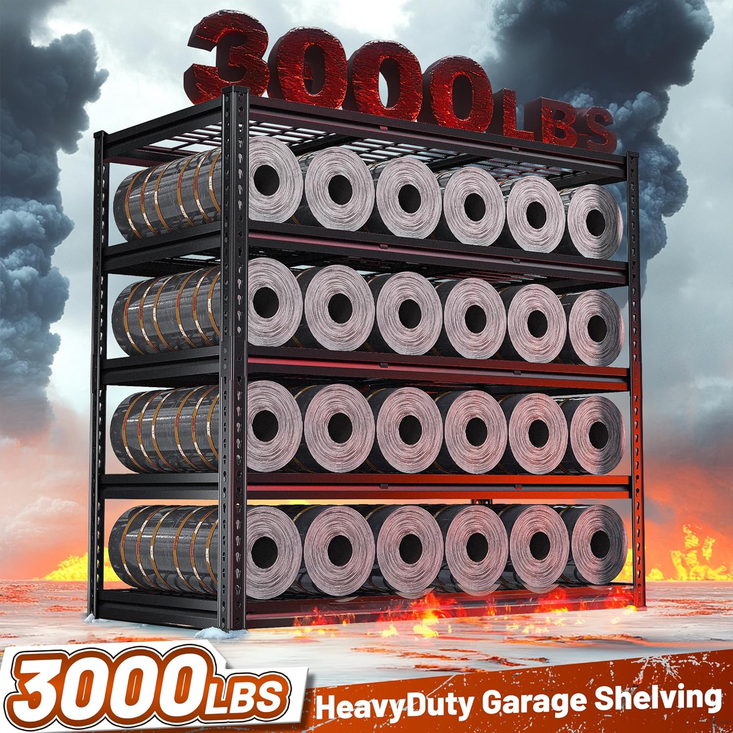 • 【3000LBS Garage Shelving Heavy Duty】The metal shelving adopts thickened double-layer columns, and the heavy duty shelving is made of sound metal material. Each layer of shelves has 4 double layers of steel wire and 2 additional braces, thickened metal columns and beams provide greater support to prevent this garage shelves from deformation and bend. Each sturdy shelf layer can hold up to 600 LBS for a total carrying capacity of 3000 LBS