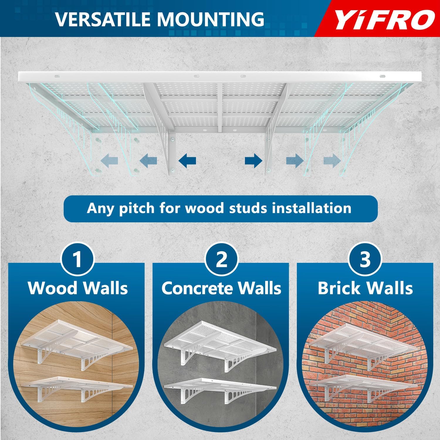 - ADJUSTABLE SPACING: YIFRO garage wall shelves is suitable for any wood post spacing, including standard 16'/18'/24'/32' spacing for installation.