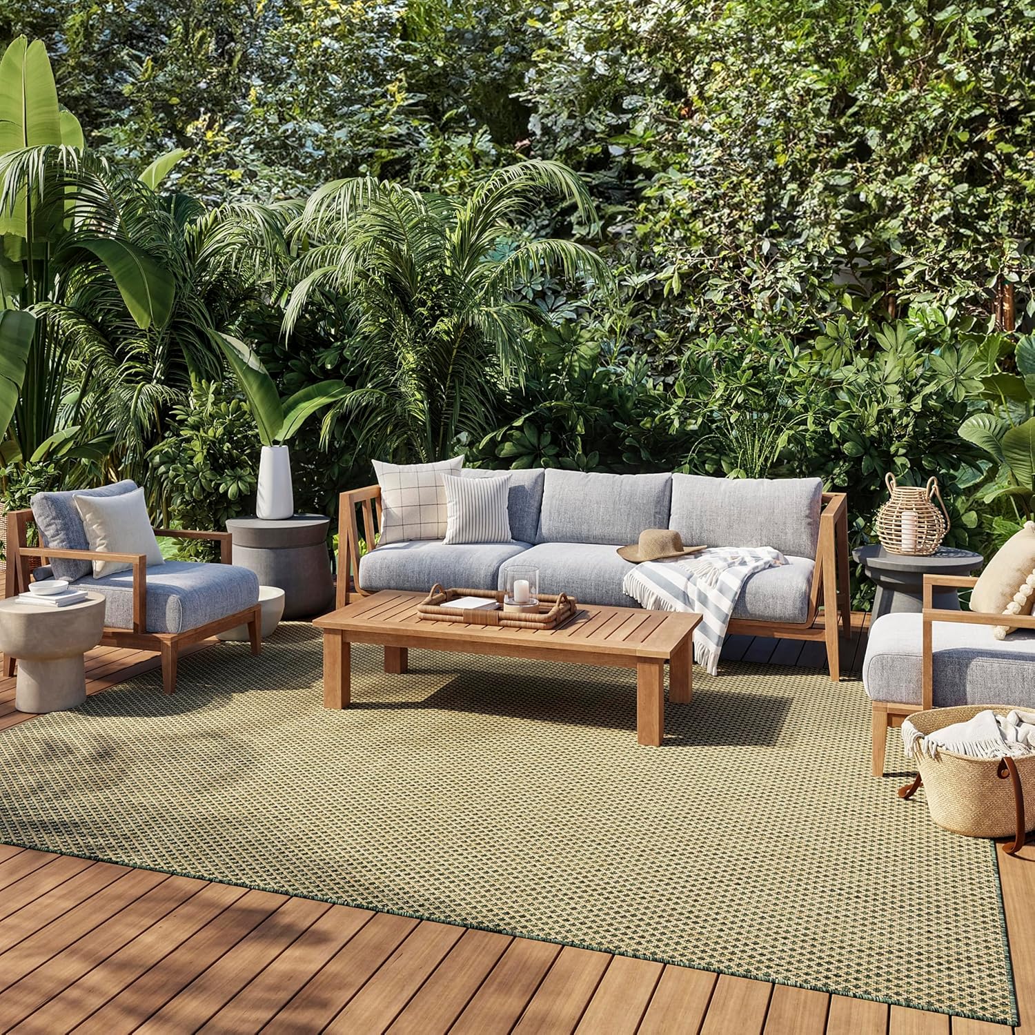 Nourison Home Courtyard Green 8' x 10' Area Rug - Easy Clean, Non Shedding, Bed Room, Living Room, Dining Room, Kitchen (8' x 10')
