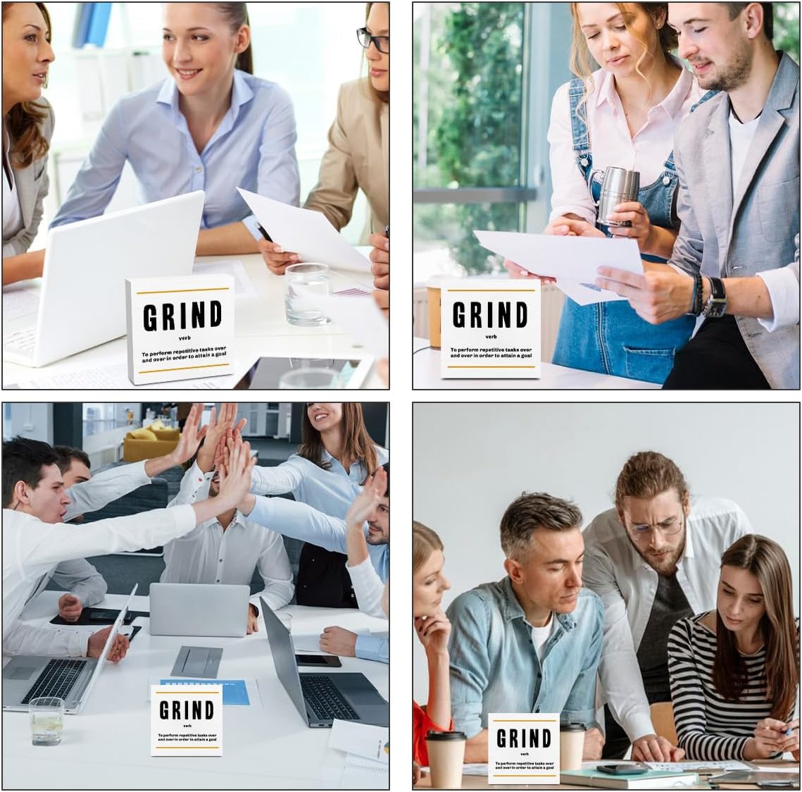 Grind Definition Entrepreneur White Wooden Box Sign, Inspirational Office Decor Decorative Table Shelf Desk Decor, Rustic Workplace Farmhouse Home Cubicle Decor Office Decorations Desk Accessories
