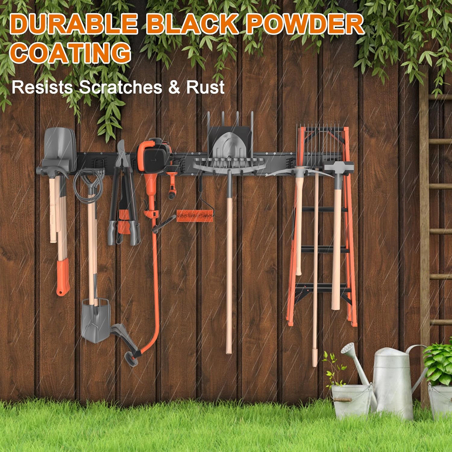 - [Fully Customizable]: The adjustable hooks and rails of this garden tool organizer set provide a customizable system to accommodate tools of various sizes and shapes, such as: shovels, rakes, brooms, mops, garden hoses, power equipment, etc; Ensure that the area is tidy