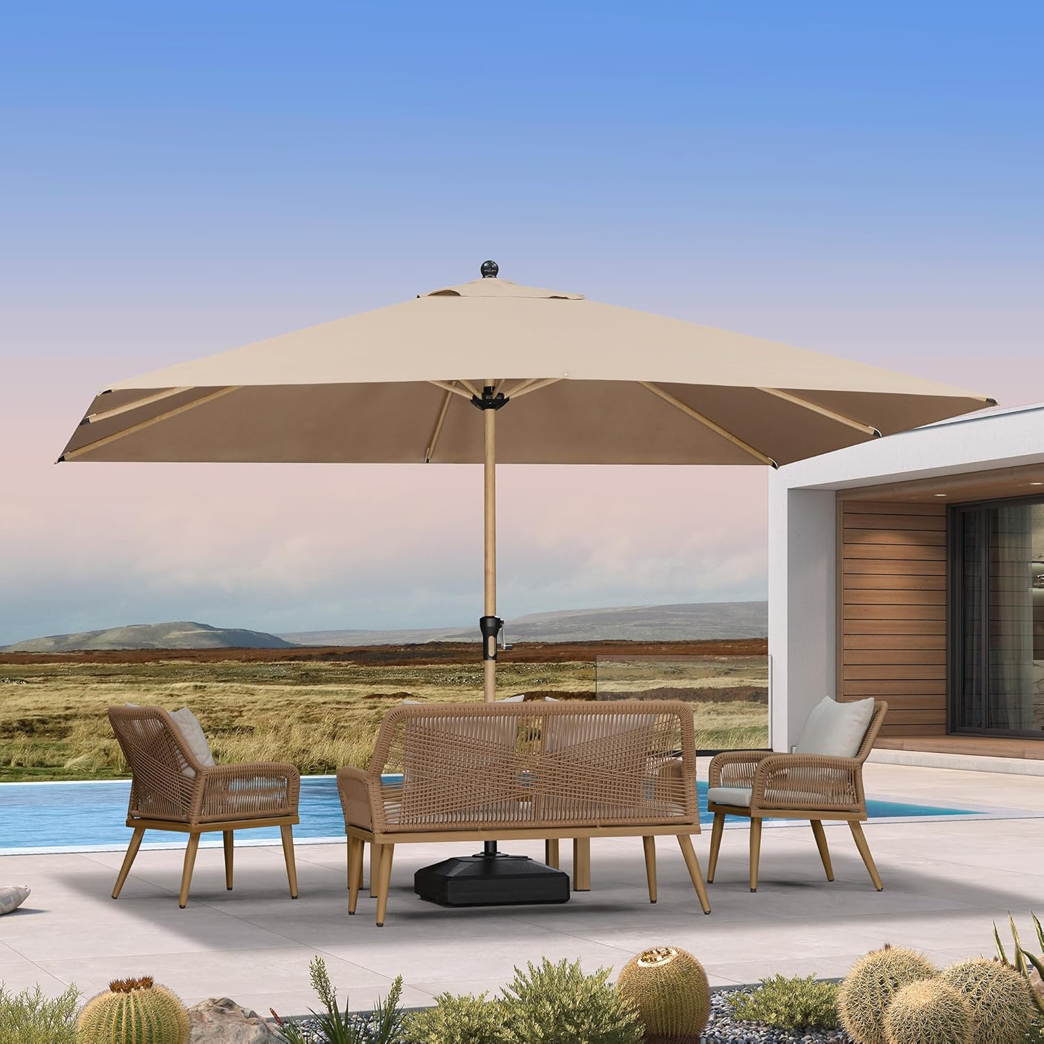 PURPLE LEAF 9' x 11.5' Patio Umbrella with Base Outdoor Umbrella Market Umbrella with Crank & 8 Ribs Aluminum Rectangular Table Umbrella Outdoor Patio for Backyard, Taupe
