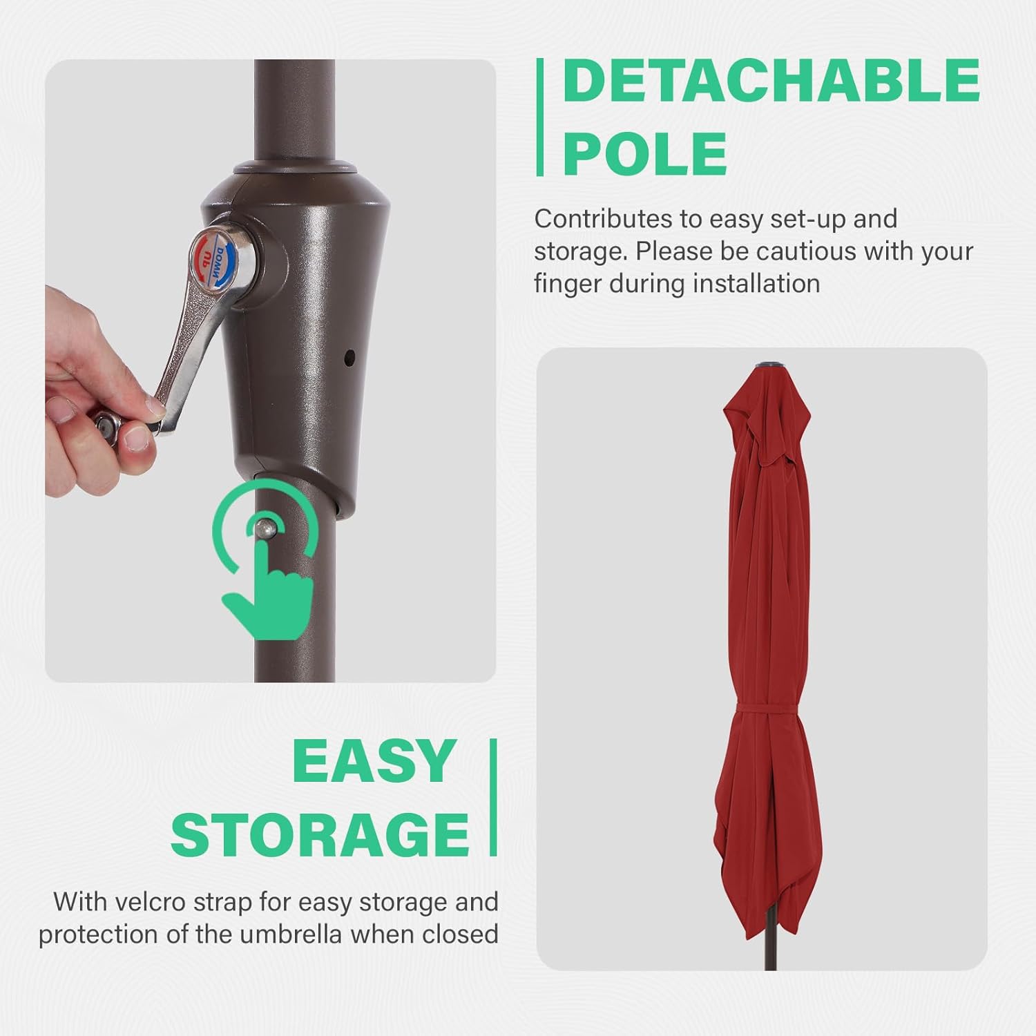 - ăTOP AIR VENTă- The double-layer canopy allows full circulation of hot air and quickly reduces the temperature under the rectangle umbrella. It not only improves the stability of the table umbrella and prevents it from being blown over in windy weather, but also allows you and your family to enjoy the leisure time comfortably