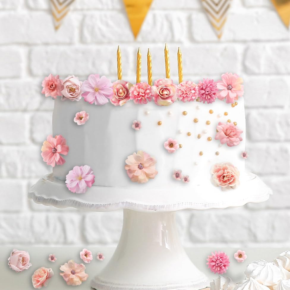 Faux Flower Heads Small Silk Artificial Flower DIY Fake Mini Flowers Rose Daisy Multicolor Flowers Craft Supplies for Wedding Party Wreath Graduation Season Party Home Decor (125, Pink)