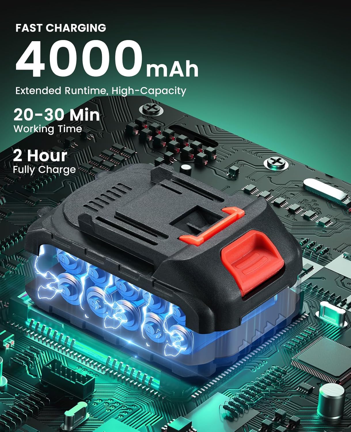 - Weed Eater Battery Powered with Fast Charging: This 21V cordless grass trimmer comes with 4,000mAh battery, which can complete the mowing task for an average small yard. It offers 20 to 30 minutes of runtime, making it an ideal choice for small-sized gardens. The built-in digital display allows you to check the remaining battery level at a glance, and the fast charger fully replenishes the batteries in just 2 hours.