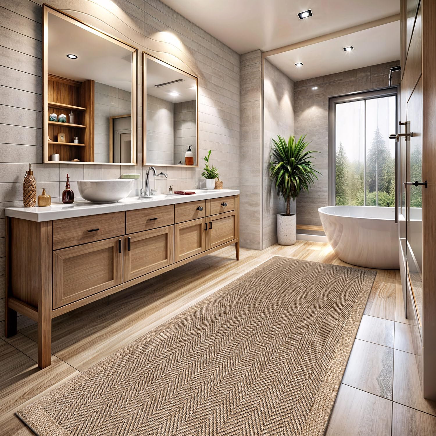 CAMILSON Indoor and Outdoor Runner Rug Natural Herringbone Seagrass Boho Design Easy-Cleaning Non Shedding Fiber Living Room Bedroom Garden Patio and Kitchen Washable Outside Carpet Alfombras (2x7)