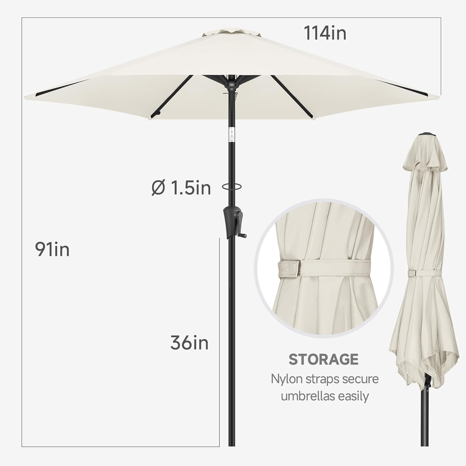 - Multiple Sizes: Available in 7.5ft, 9ft, 10ft and 11ft, this market umbrella comes in various sizes to suit different spaces.Whether you need a compact shade for a small patio or a large sun umbrella for a spacious backyard, we have the right size for you