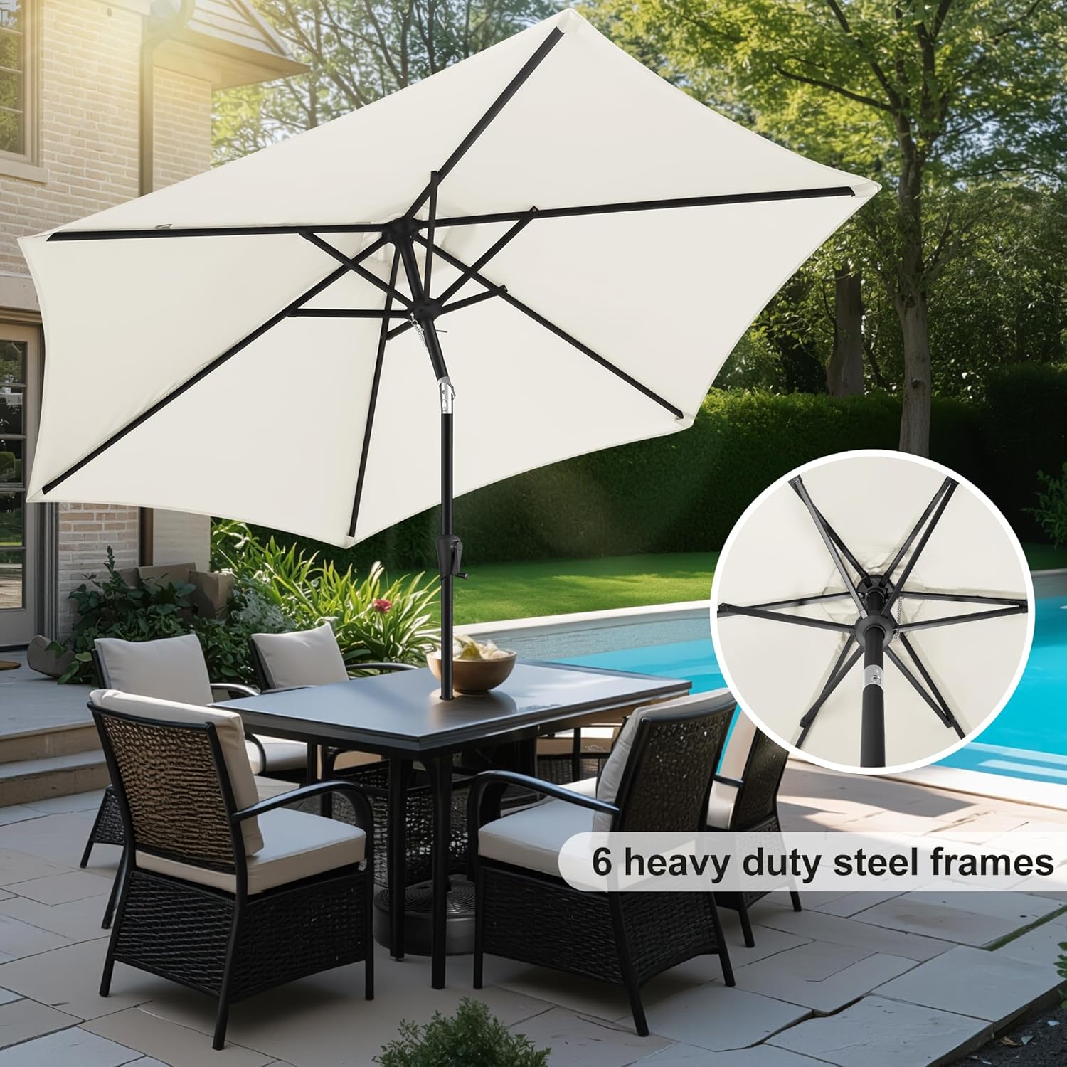 FLAME&SHADE 10ft Patio Umbrella - Outdoor Umbrella with 6 Sturdy Ribs, Push Button Tilt and Crank, UV Protection Table Market Umbrella for Pool, Porch,Garden, Deck, Backyard (Ivory)