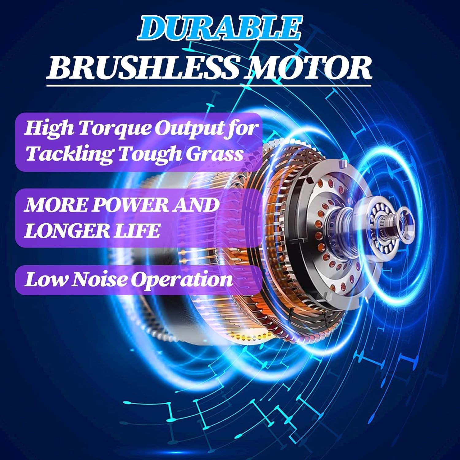 - 【Enhanced Brushless Motor】 Crafted for exceptional durability, this brushless motor delivers a notably longer service life. Its gear-driven design produces high torque for the blades, providing stronger power and a sharper, faster cut.