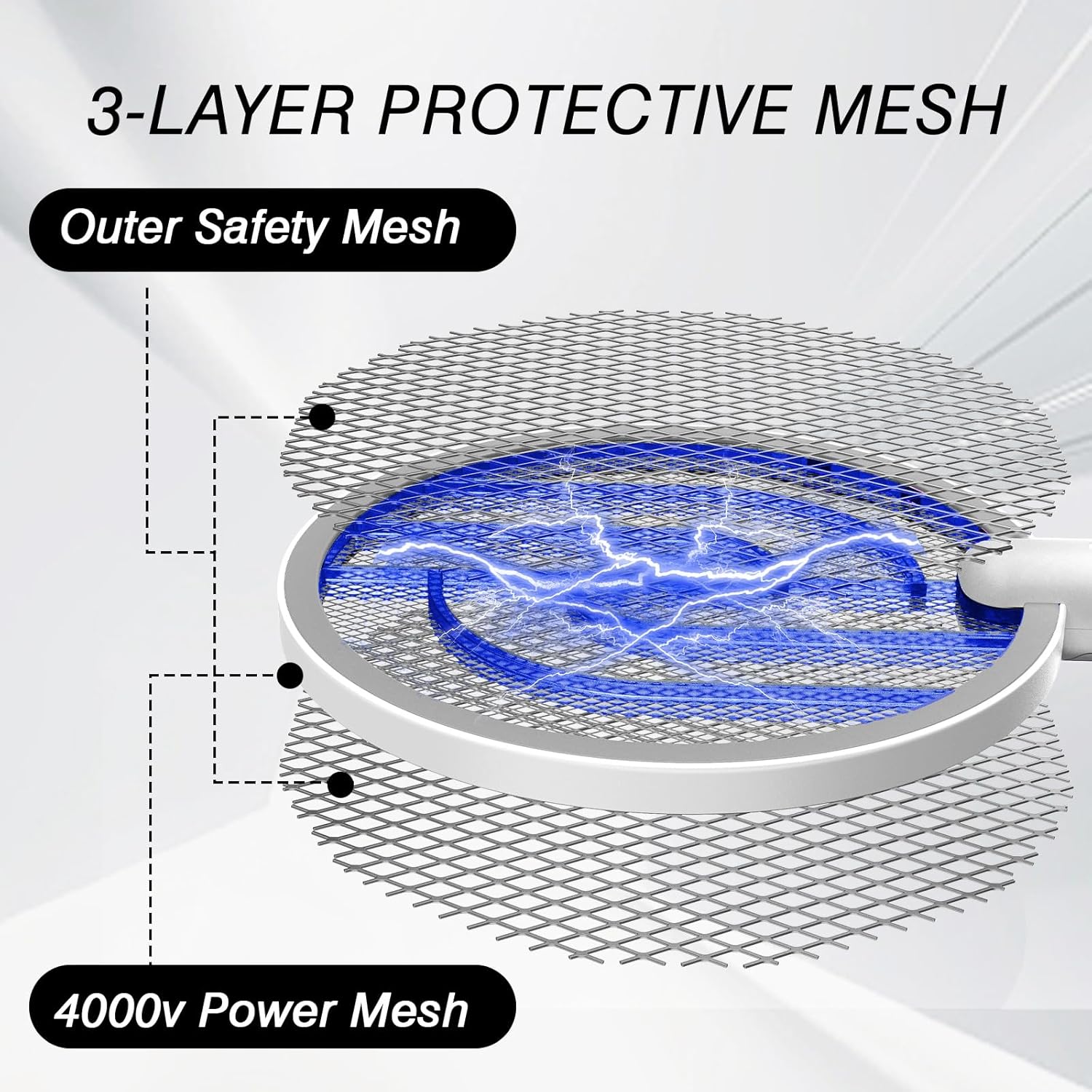 - Powerful and efficient: Equipped with a 4000V high-voltage power grid, it can continuously impact 50 times without the need for multiple waves, only one swing is needed. The built-in ultraviolet lamp beads emit purple light at night, causing them to actively approach the electric racket and immediately receive an electric shock