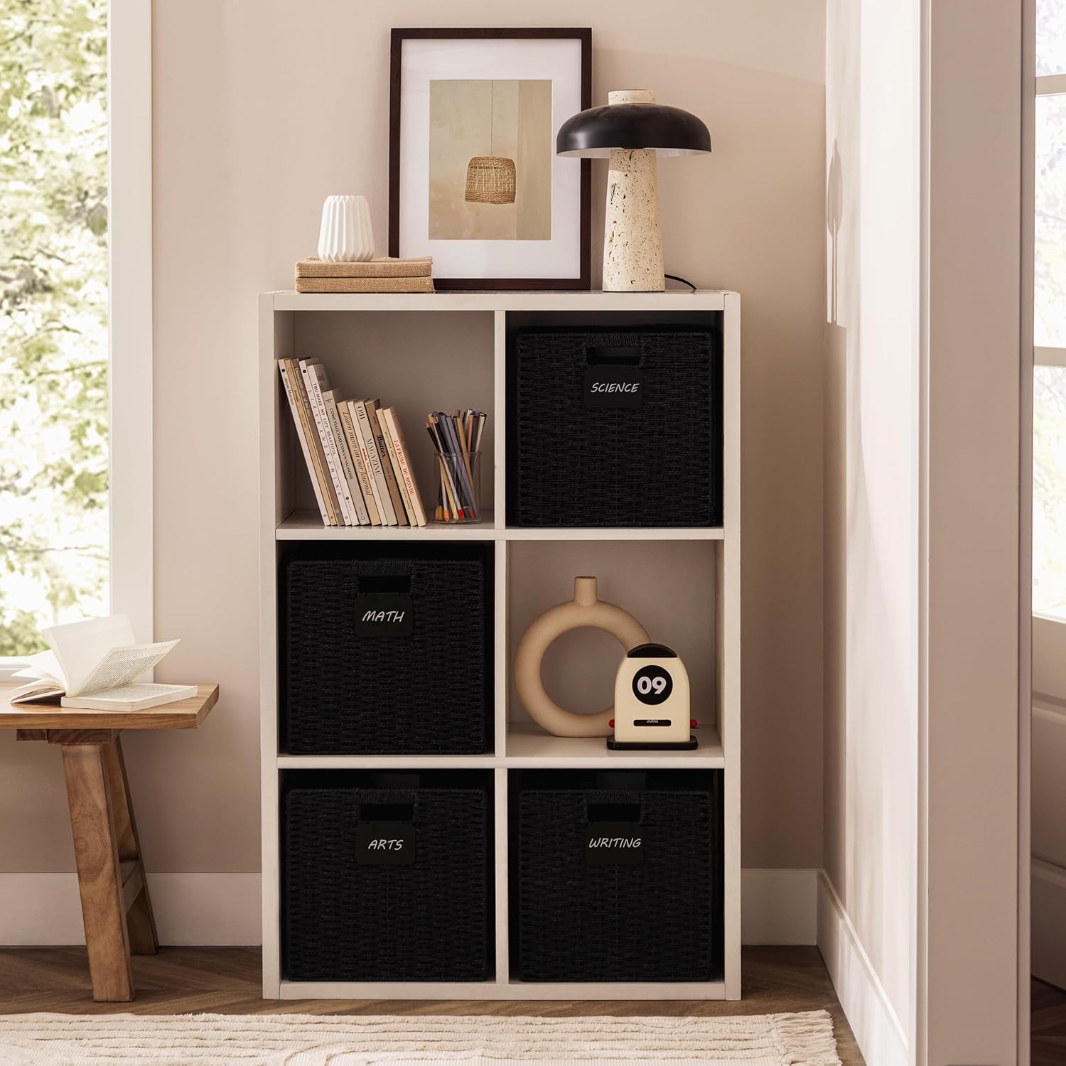 UBBCARE 4 Pack Wicker Basket, 13×13 Storage Cubes with Label, Foldable Cube Storage Bin with Handle, Square Storage Basket for Shelves, Woven Paper Rope Basket for Organizing, Black