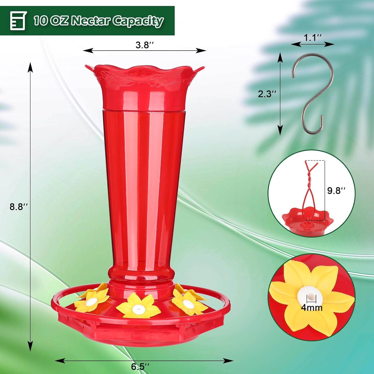 FEED GARDEN 10oz Plastic Hummingbird Feeders for Outdoors - 2 Pack Red, Ant & Bee Proof, 6 Feeding Ports, Easy Clean Red Nectar Feeders for Outside Hanging, Gifts for Mom