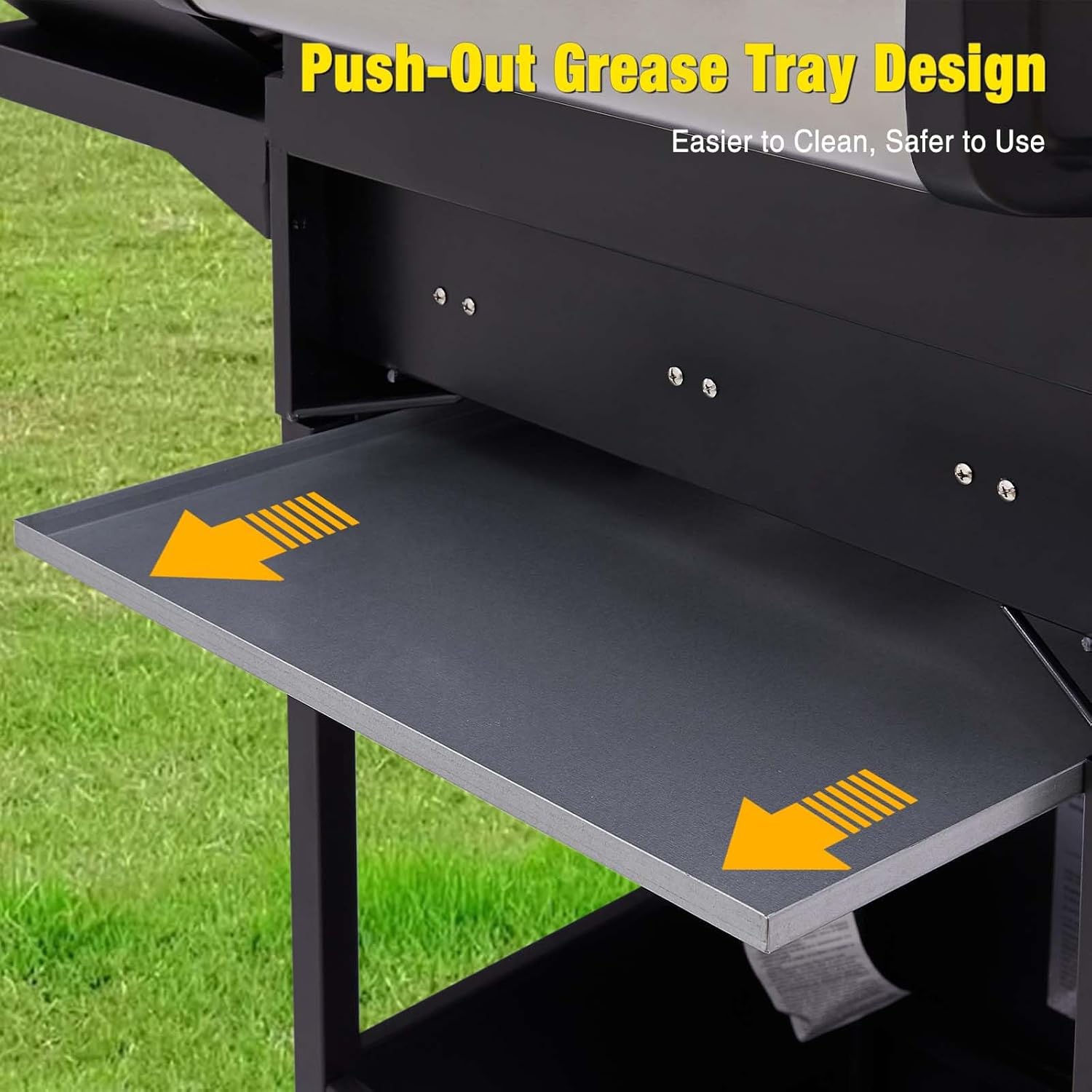 - Special Feature : Built-In Thermometer, Portable, Removable Grease Tray