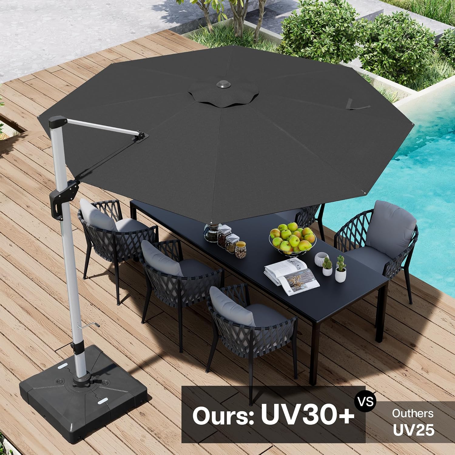 - 360-Degree Rotation & Easy Gliding: A built-in cross base is compatible with 4-piece weighted umbrella stands. Step on the pedal and turn the sturdy aluminum pole to your desired position.