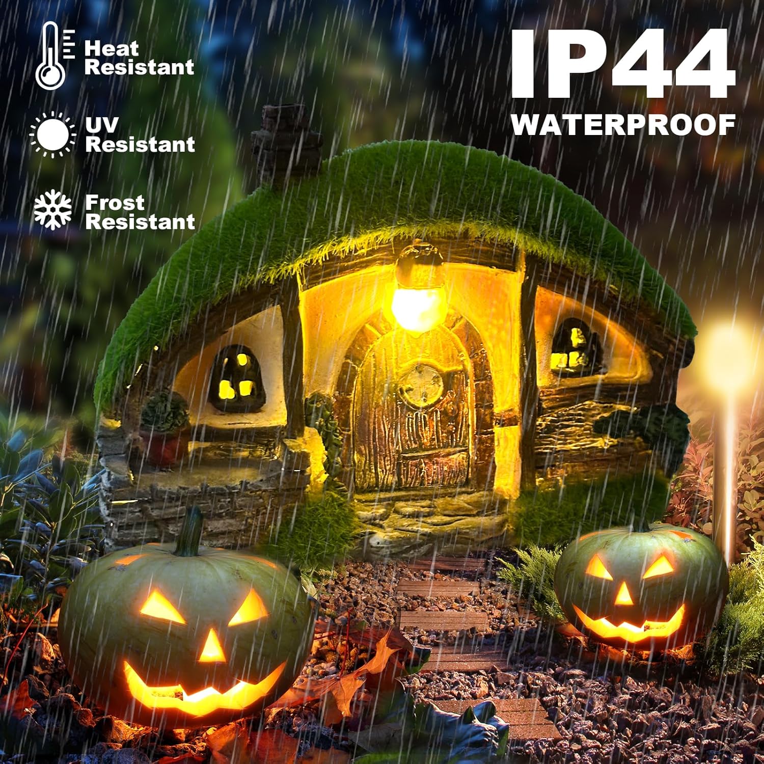- Premium Waterproof Design:The Solar House is made from high-quality resin, with tightly connected parts for superior waterproof performance. The hand-painted design is coated with a protective layer, ensuring the outdoor sculpture is sturdy, durable, and resistant to fading, even in harsh outdoor conditions