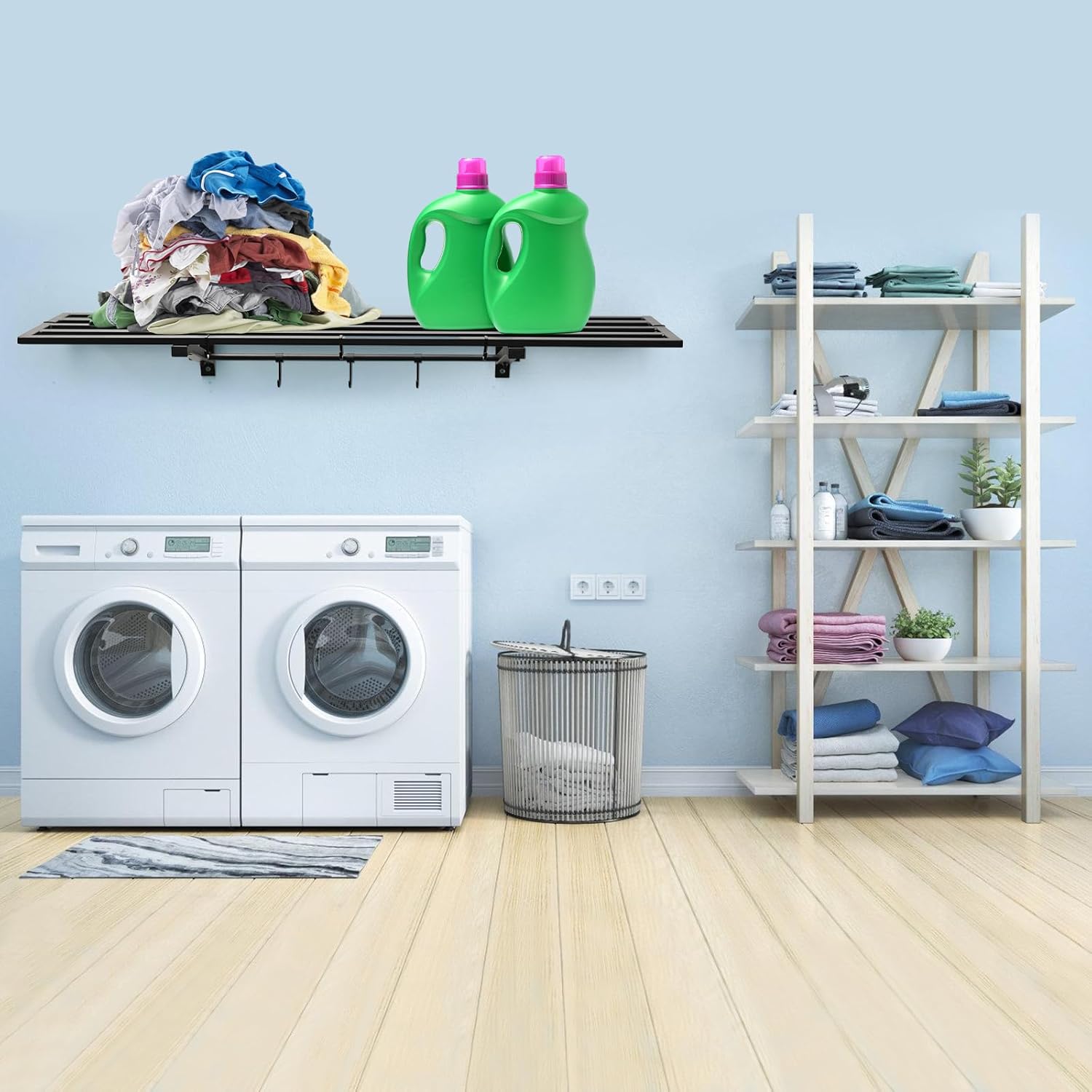 - Premium Material: Made with thickened black powder-coated steel for rust resistance and longevity. Triangular bracket reinforcement ensures stability under heavy loads, It also has a reinforced front beam and multiple hooks to hold more items.
