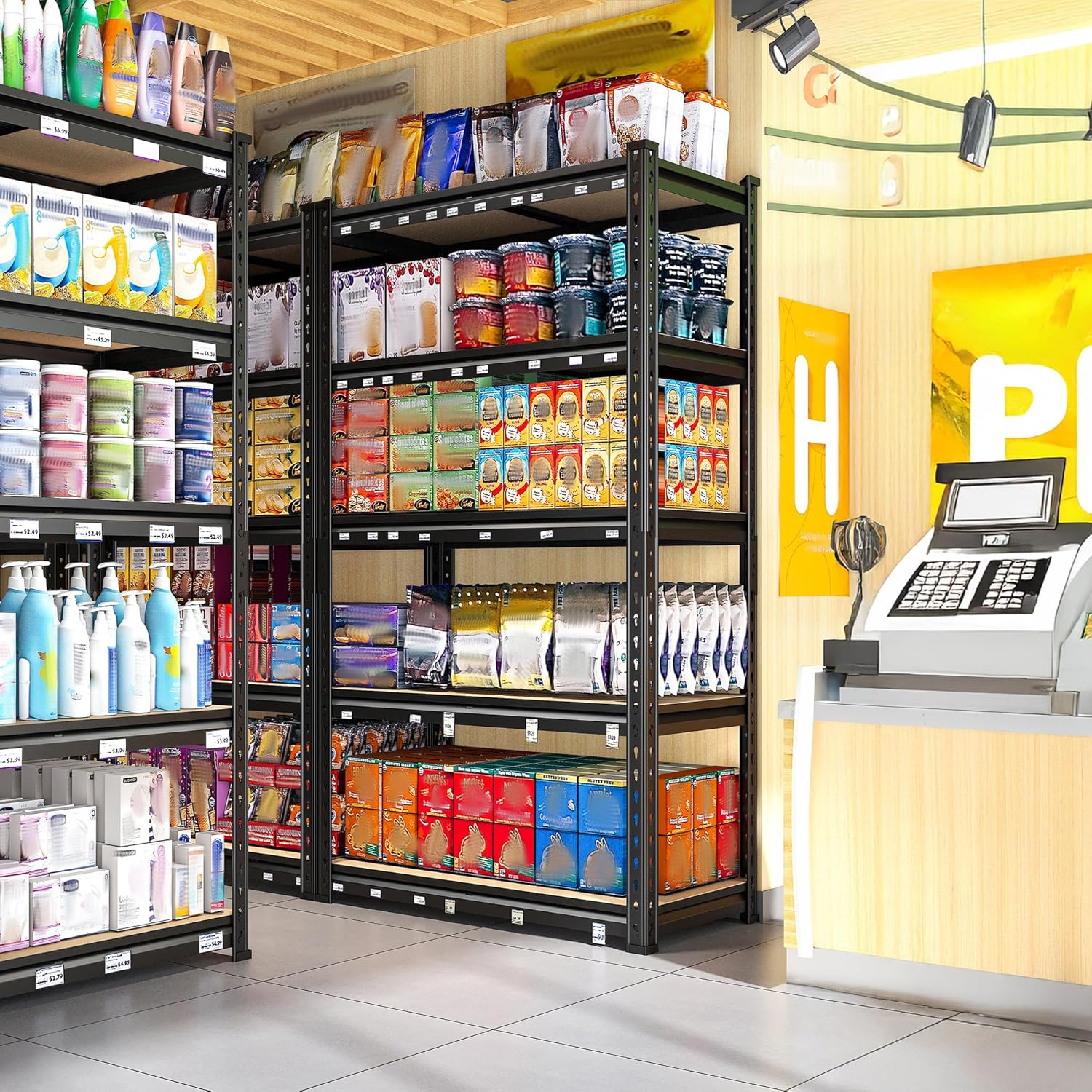 REIBII Set of 2 Storage Shelves 5 Tier Garage Shelving Heavy Duty Metal Shelving 2000LBS Garage Shelves Adjustable Metal Shelf for Kitchen Warehouse Pantry Closet, 27.6" W x 11.8" D x 60" H