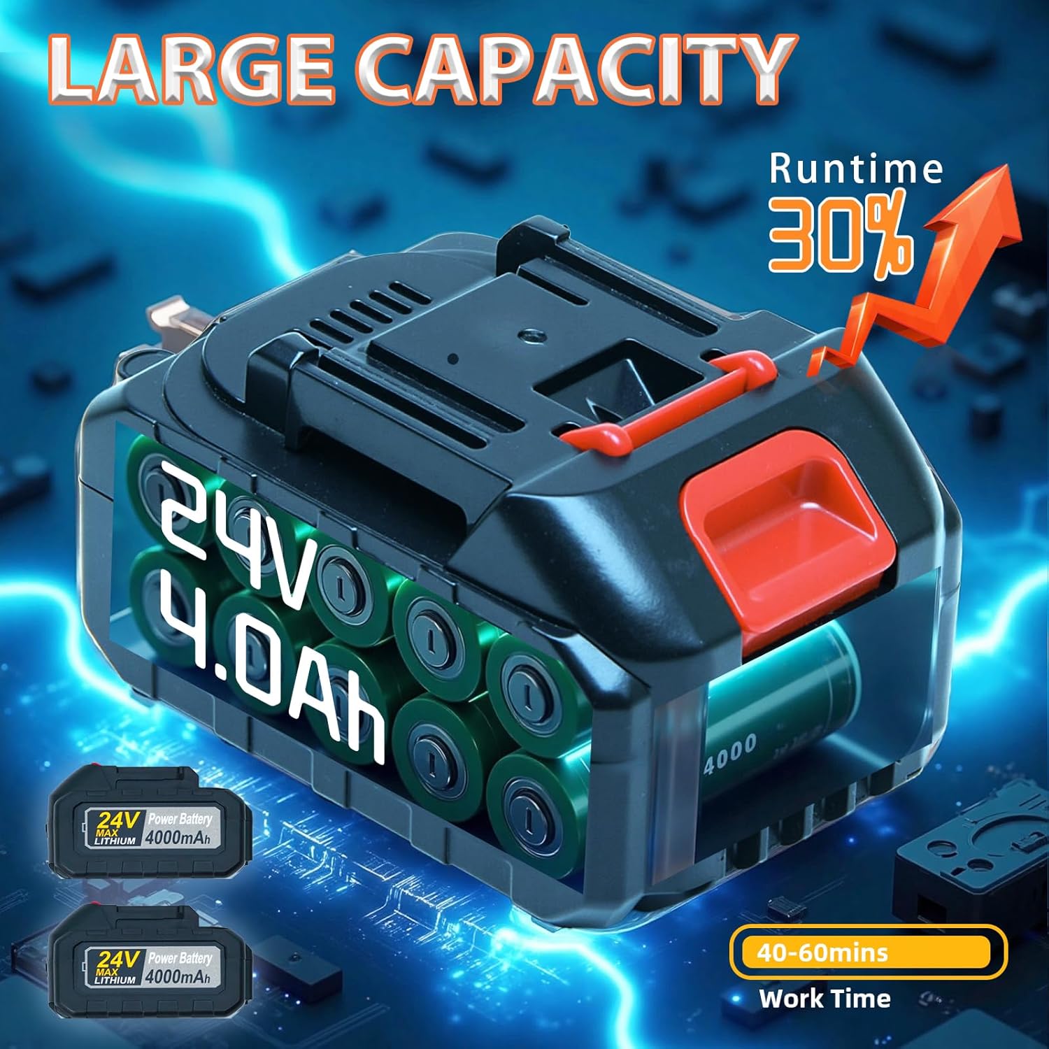 - 【🔋Long-Lasting Battery】Battery Weed Wacker with Charger Includes 2×4.0Ah 24V rechargeable batteries + fast charger for 30% longer runtime vs competitors. Finish your yard in one go—no frustrating mid-job shutdowns!