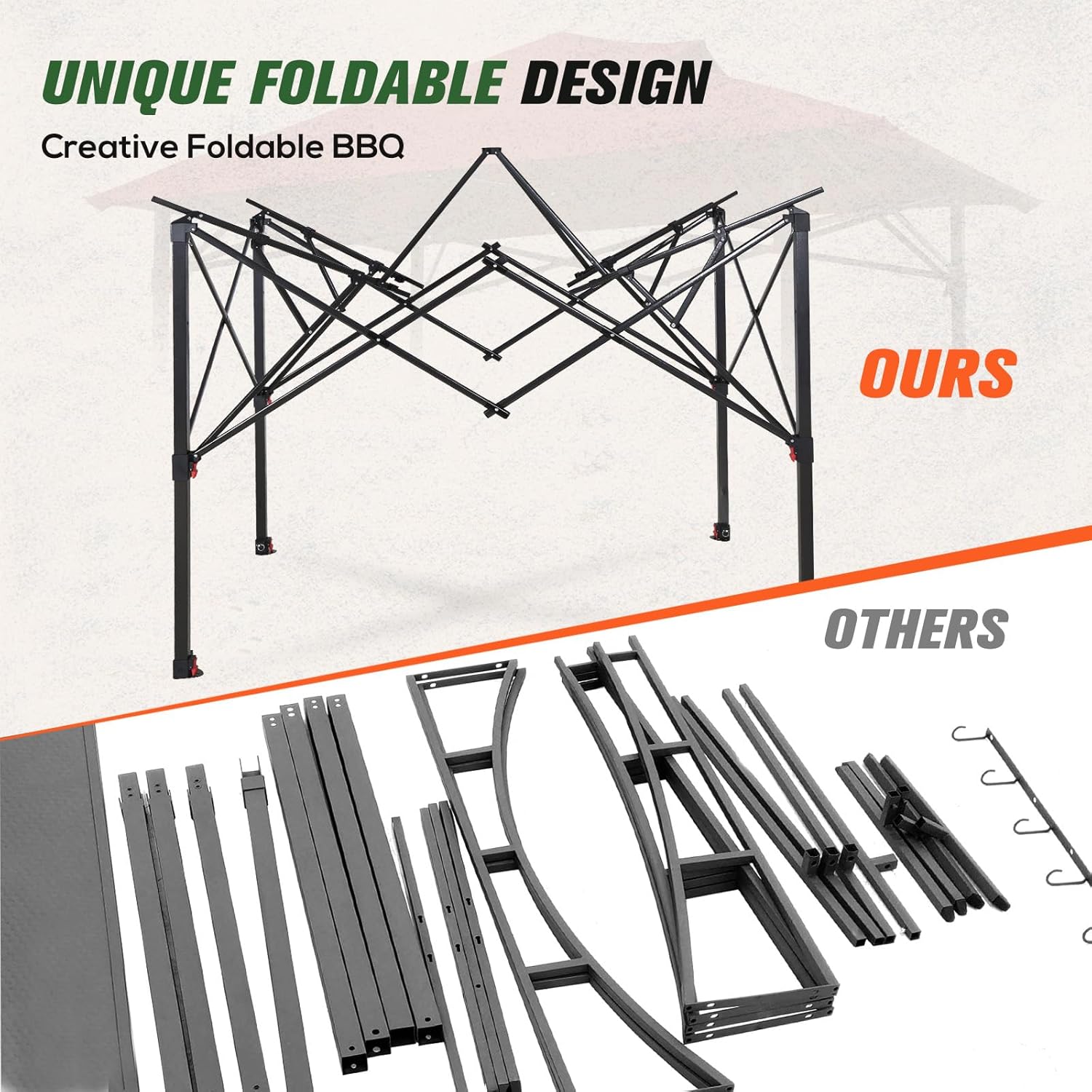 - 2 SIDE SHELVES : Each side comes with a metal grid shelf to keep drinks and food. The frame also includes a built-in bottle opener and hooks for your convenience.