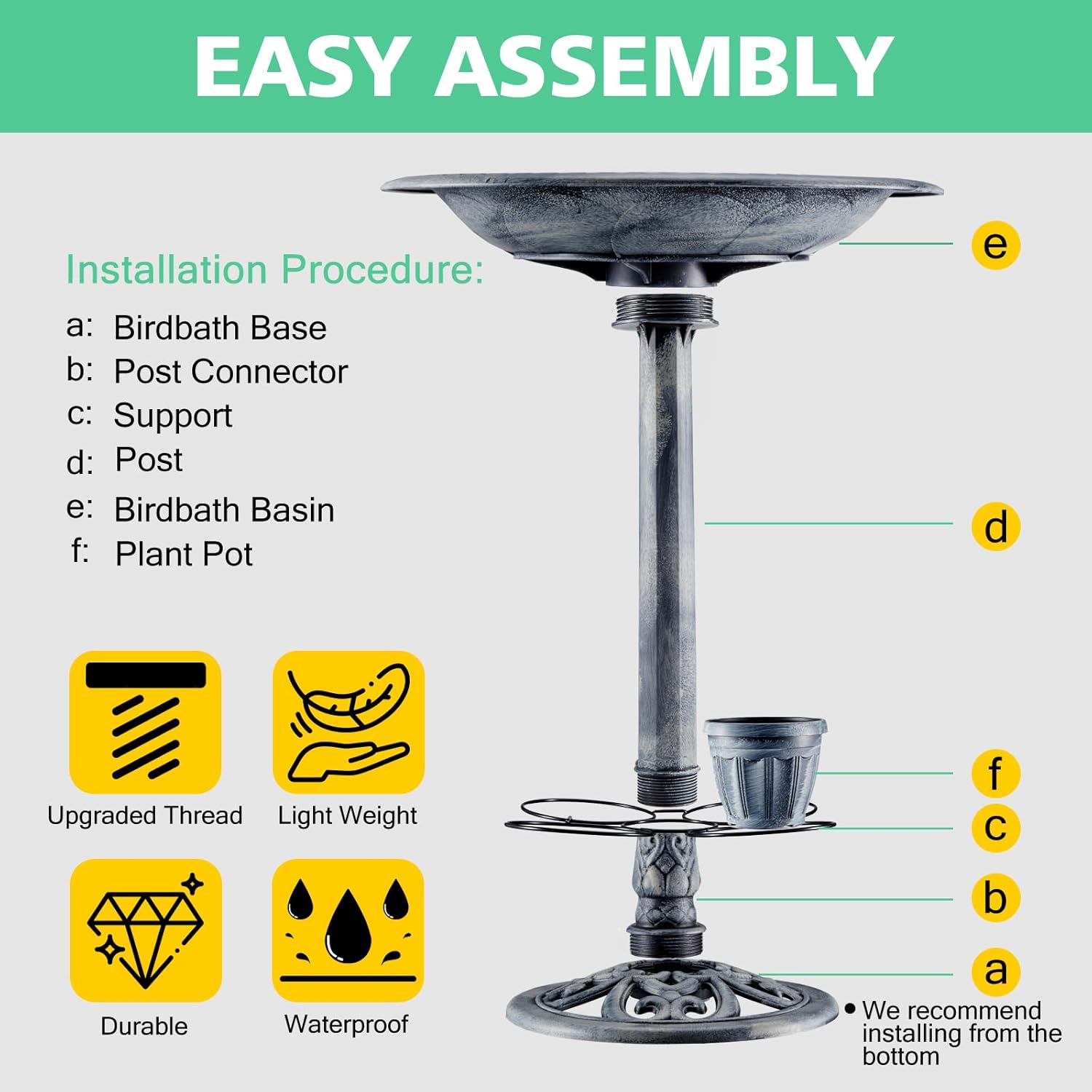 - VERSATILE DESIGN and 4 FLOWER POTS: Our bird bath features a unique design with 4 planters, allowing you to customize and enhance your outdoor space with your favorite flowers and plants. Add a touch of elegance and color to your garden, patio or yard