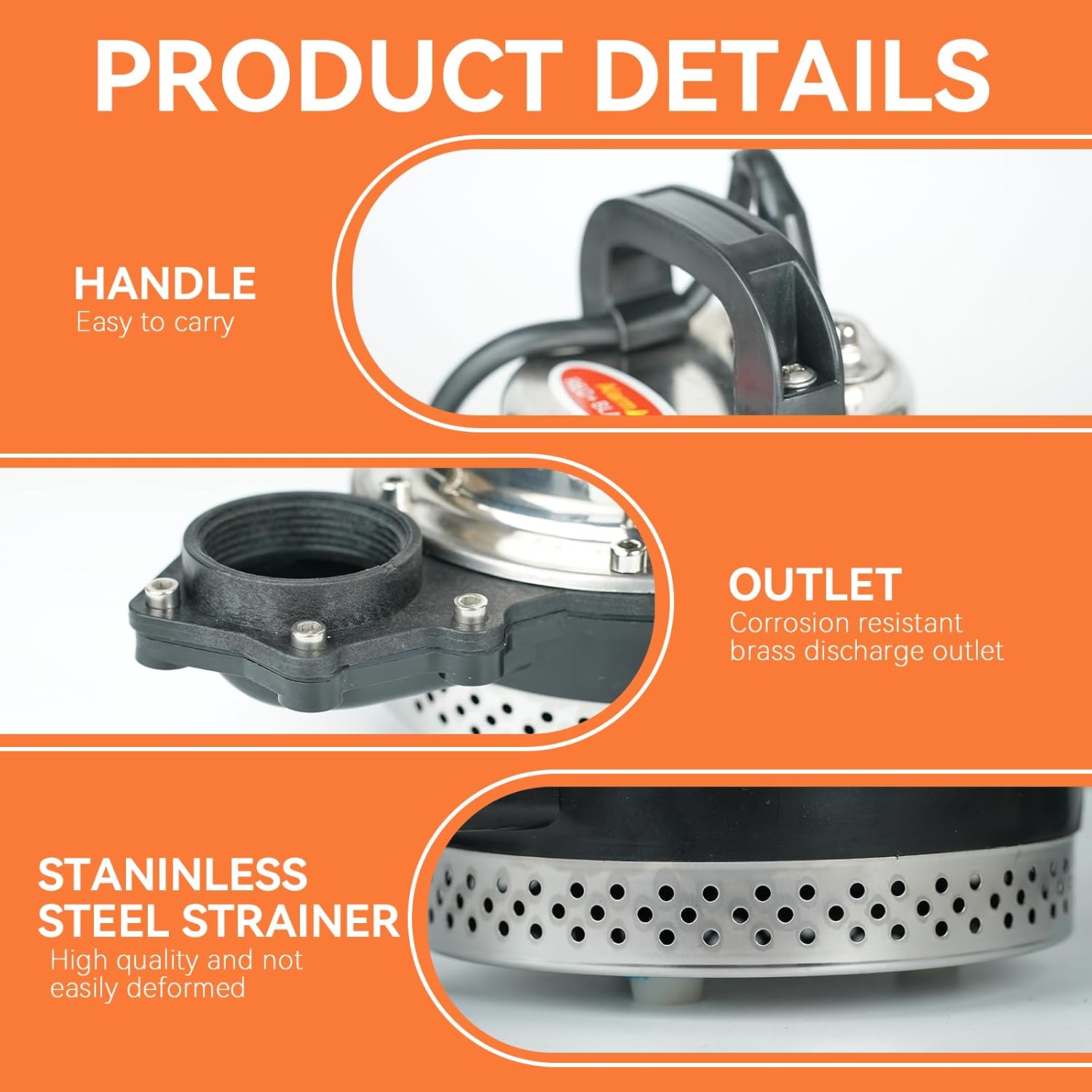 BACOENG DC 12V Solar Water Pump, Submersible Well Pump 20FT, 20GPM Lift for Farm & Ranch
