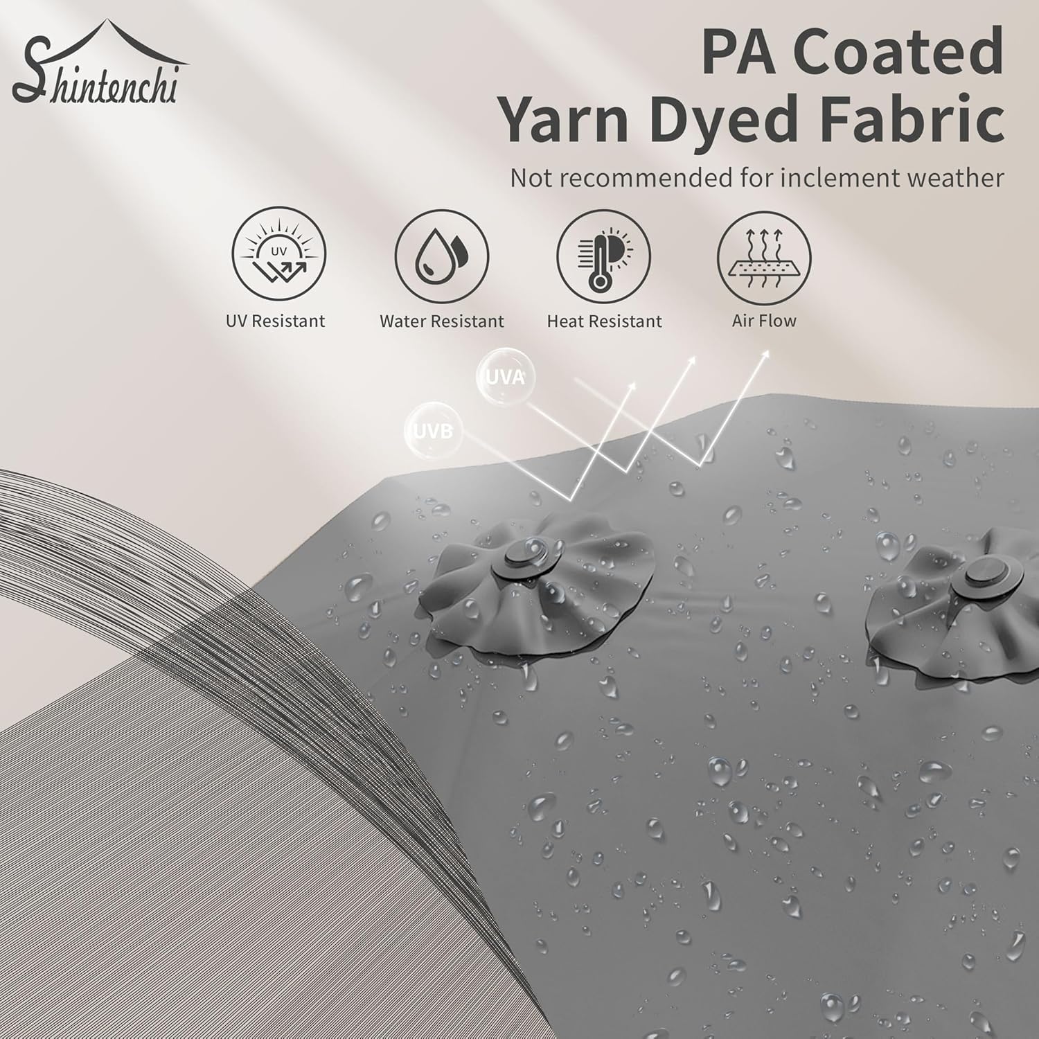 - Extra-Large Shade Coverage:15ft double-sided design creates expansive shading area, comfortably accommodating people gathering. Ideal sun protection solution for patios, poolside areas, and commercial spaces