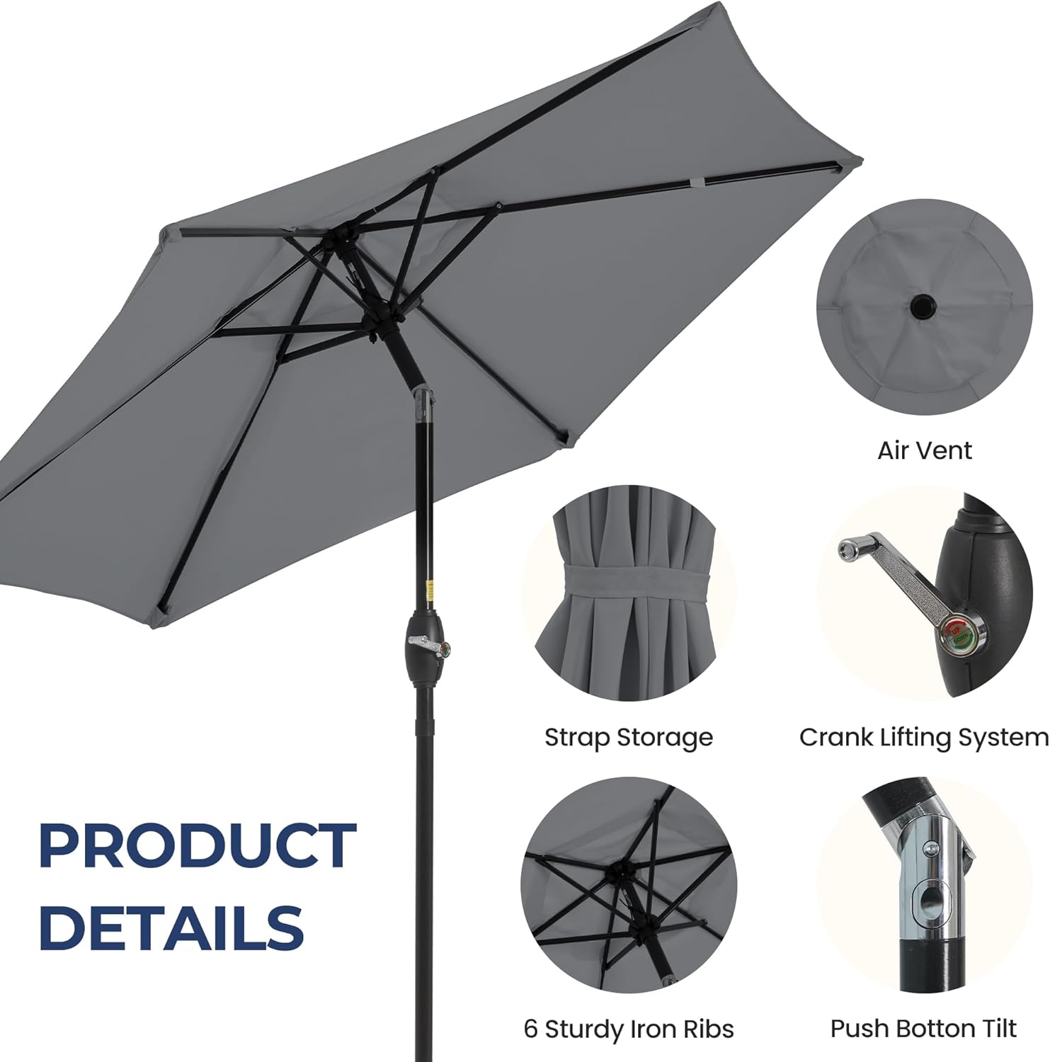 Aok Garden 7.5 ft Patio Umbrella Outdoor Market Umbrella Tilt Button and Crank 6 Ribs for Deck Lawn Pool& Backyard