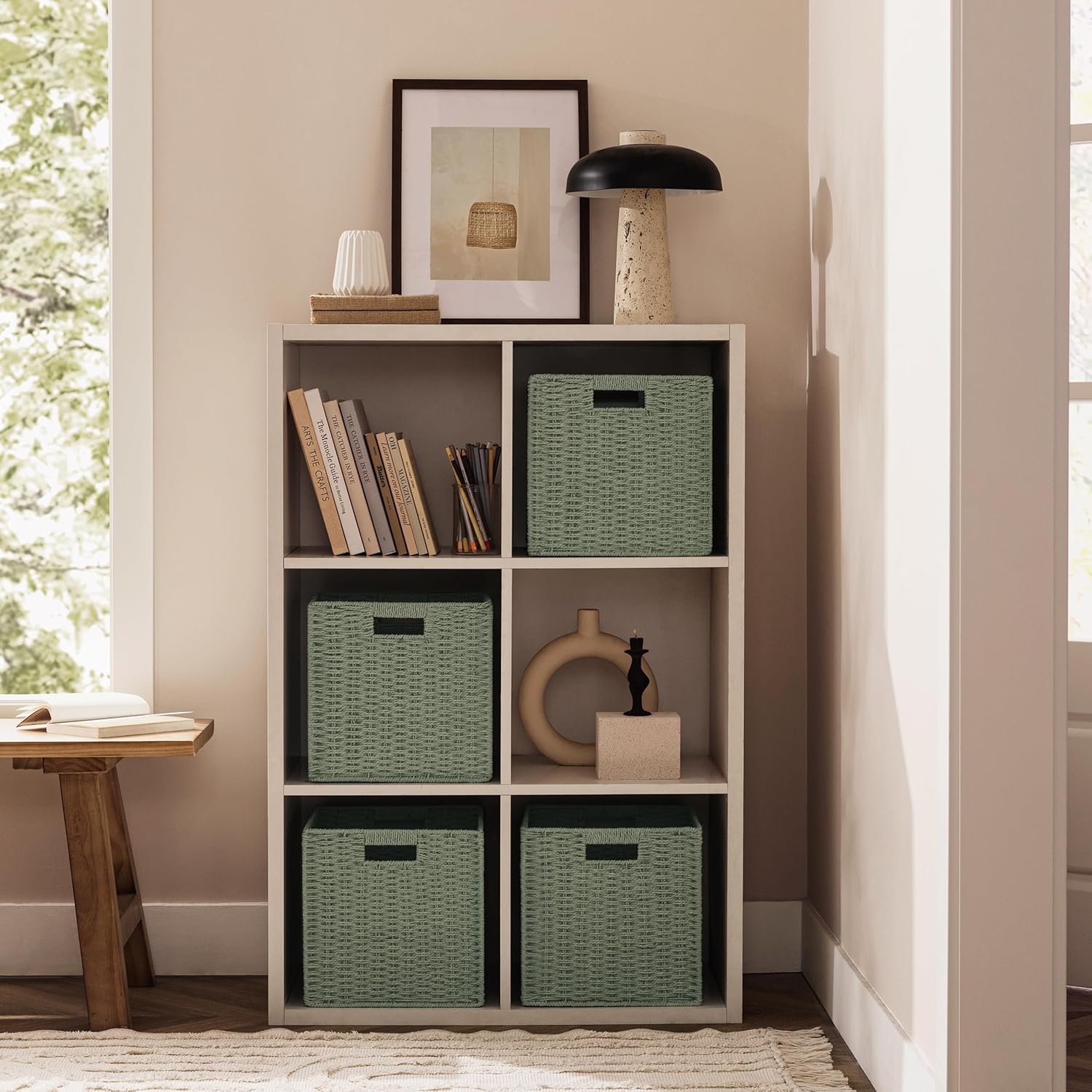 UBBCARE 2 Pack Wicker Basket, 11.8L×11.8H×11W inch Woven Paper Rope Storage Baskets for shelves, Foldable Cube Storage bin with Handle, Storage Basket for Organizing & Decor, Green