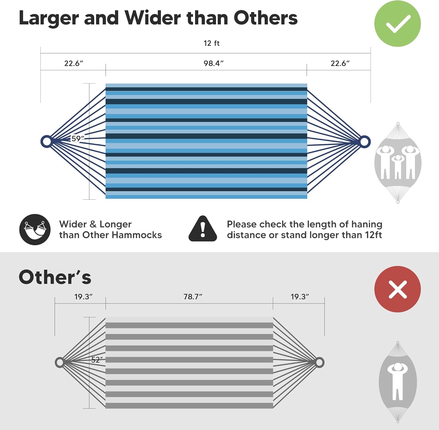SUNCREAT Hammocks Outdoor Camping Double Hammock, Extra Large 2 Person Hammock for Camping, Blue Stripes