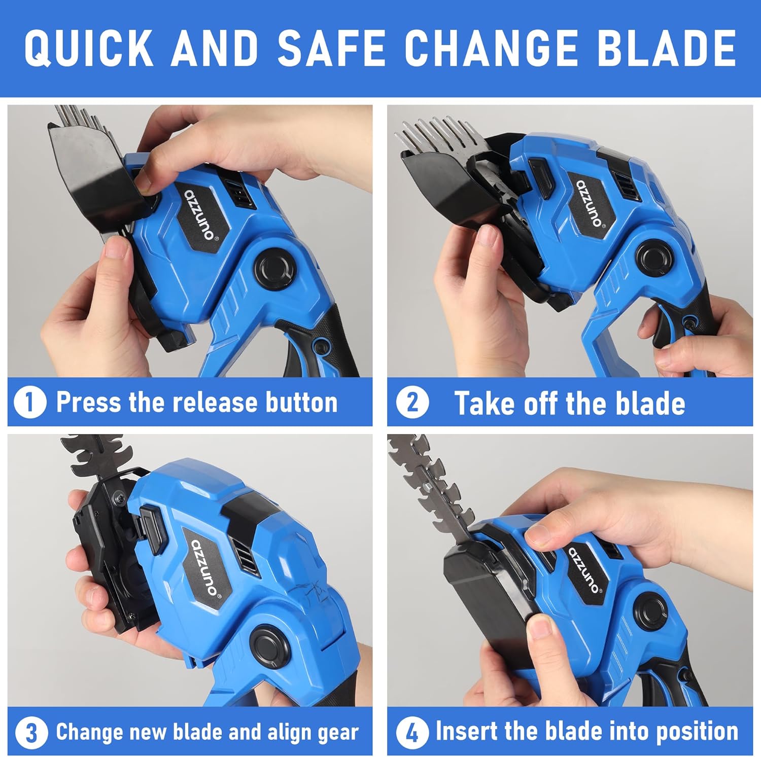 AZZUNO Cordless Hedge Trimmer, 2-in-1 Electric Grass Shears Shrubbery Trimmer with Battery,Handheld Grass Cutter Shrub Trimmer for Gardens, Yards, Lawns, Including Charger (1 Battery)