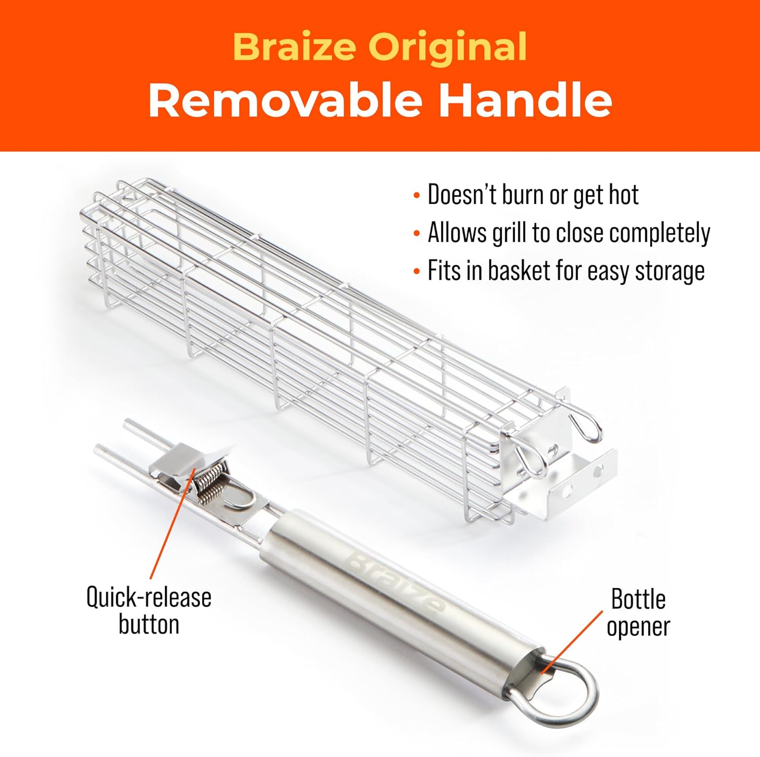 - Stay-Cool Removable Handle - Handle detaches to keep cool during grilling and stores easily in your gear bag—perfect for backyard BBQs or camping trips.