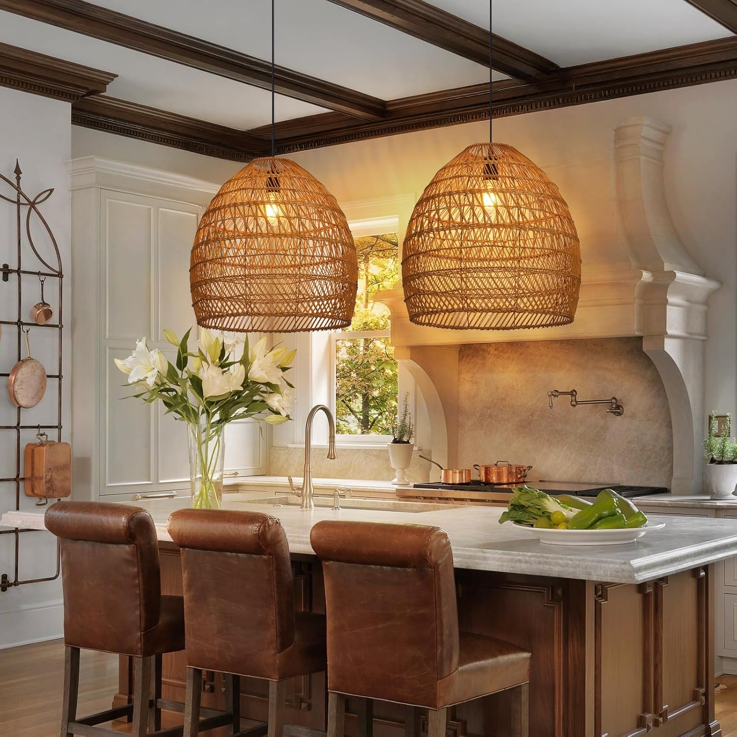 - 【Unique Design】Rustic retro bohemian coast design,woven pendant light handcrafted from natural rattan,this piece blends beauty and artistry,seamlessly fitting into your home.the coastal chandelier adds a touch of elegance,making it a standout addition to any room.