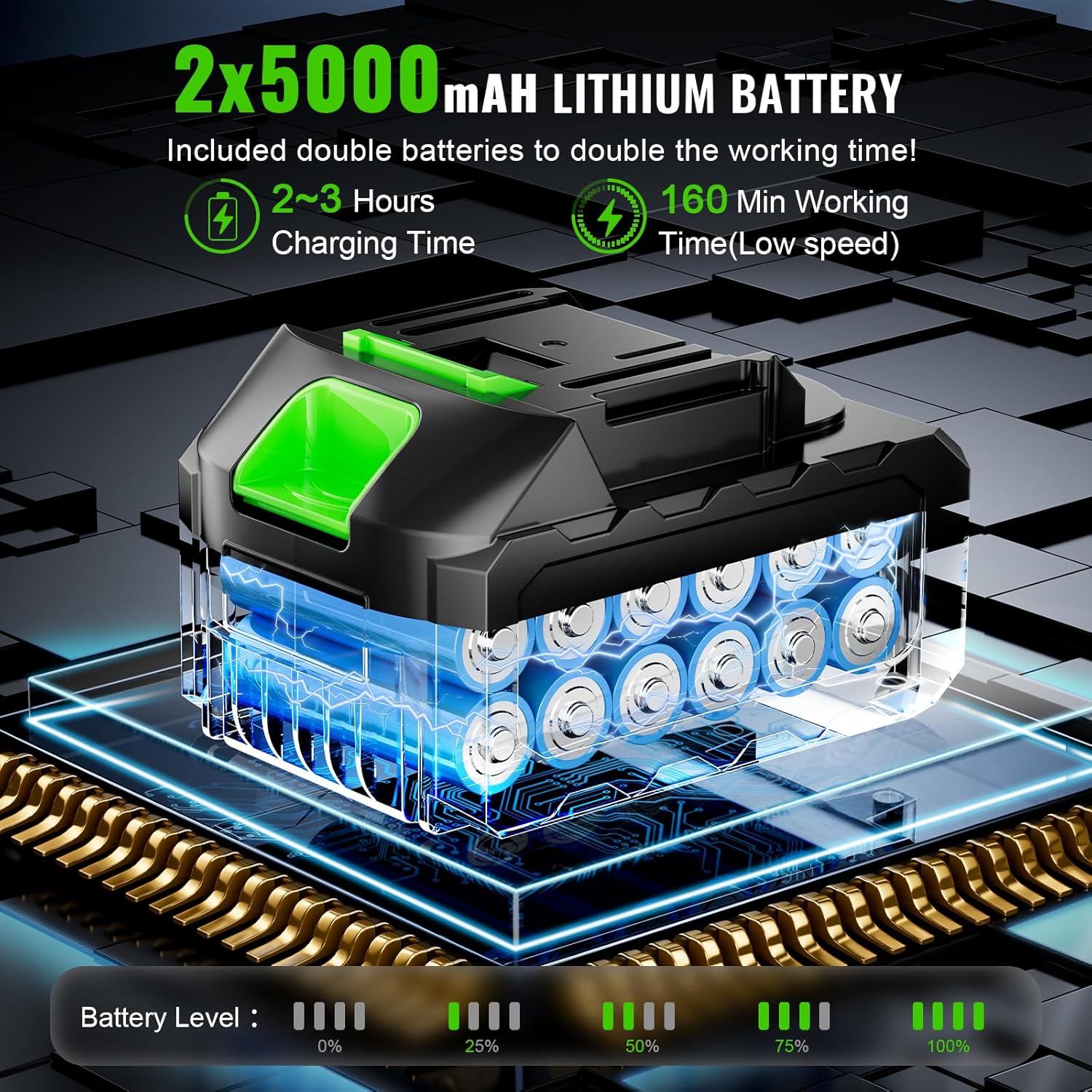 - πππππππ π¦ππ‘ πππππ πππππππ πππππππππ:TOLOOC battery operated blower is equipped with two 5000mAh super lithium batteries and comes with a safe charger for uninterrupted cleaning. 2 batteries work alternately: the highest speed can provide 25-30 minutes (large area cleaning) and the low speed can provide 160 minutes (delicate cleaning). a full charge can complete all tasks, eliminating battery power anxiety and achieving efficient and worry-free yard maintenance.