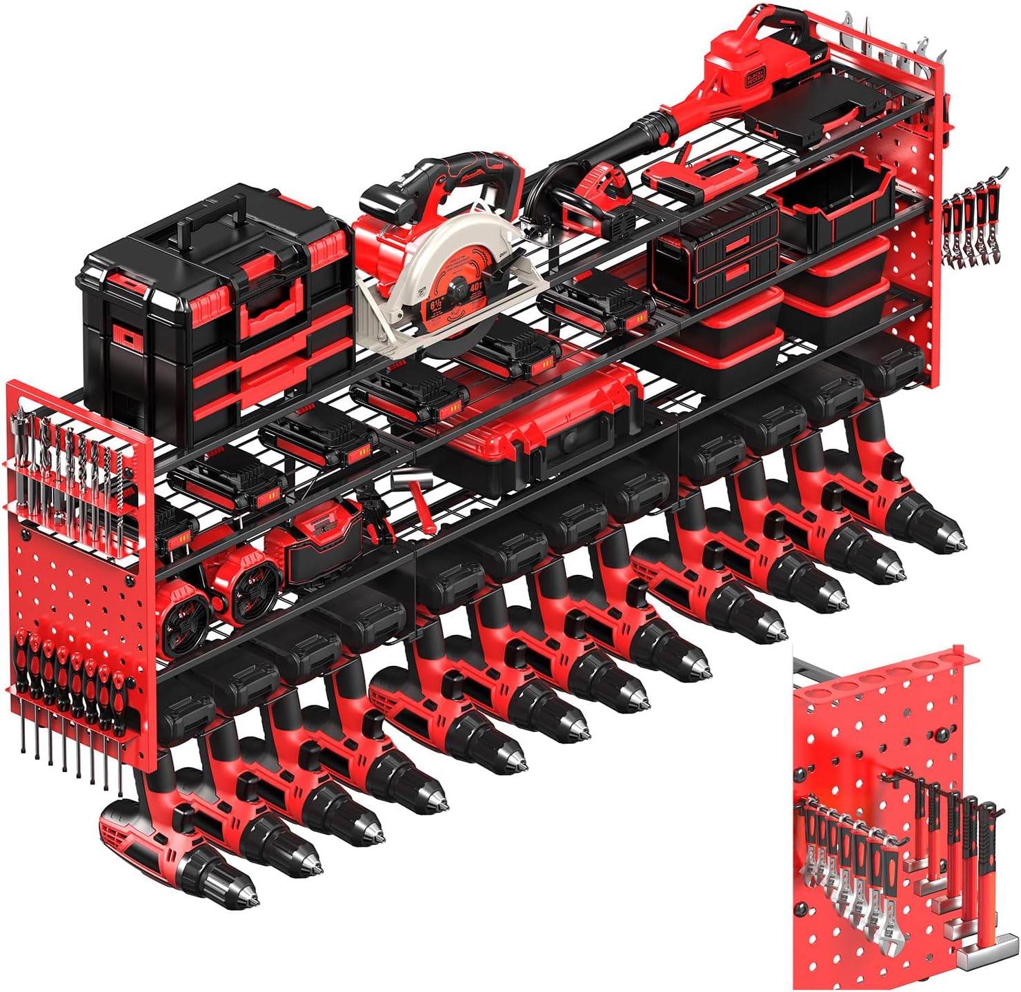 - Special Feature : 4-Tier, 12 Cordless Drills Holder, Pegboard Side Panels,4 long Hooks, Heavy-Duty Build, Holds Up to 660 lbs,Ultra-Large Capacity Garage Organizer, Multi-Functional DIY Pegboard Panels 4-Tier, 12 Cordless Drills Holder, Pegboard Side Panels,4 long Hooks, Heavy-Duty Build, Holds Up to 660 lbs,Ultra-Large Capacity Garage Organizer, Multi-Functional DIY Pegboard Panels