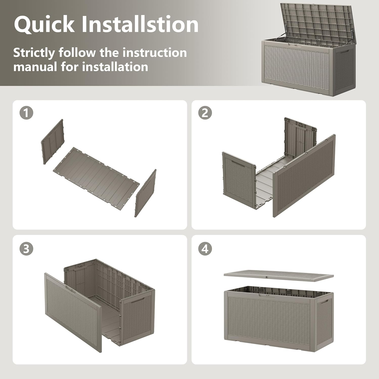 - Deck Boxes Outdoor Waterproof: Designed as a waterproof storage solution, this deck box protects your belongings from moisture and ensures they stay dry even during heavy rain. The lockable lid adds an extra layer of security, keeping your valuables safe from theft or damage.