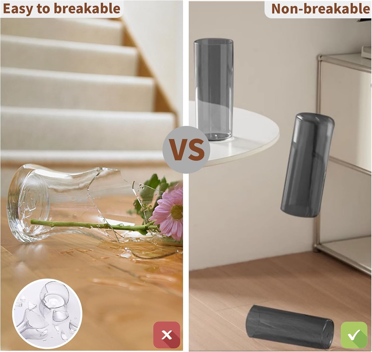 - [Non-breakable] Made of high-quality acrylic material, the vase is sturdy, non- fragile and easy to clean, which will not shatter like glass or ceramic. It’s safe and durability.